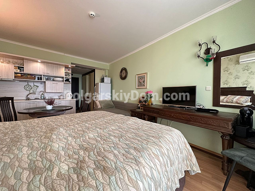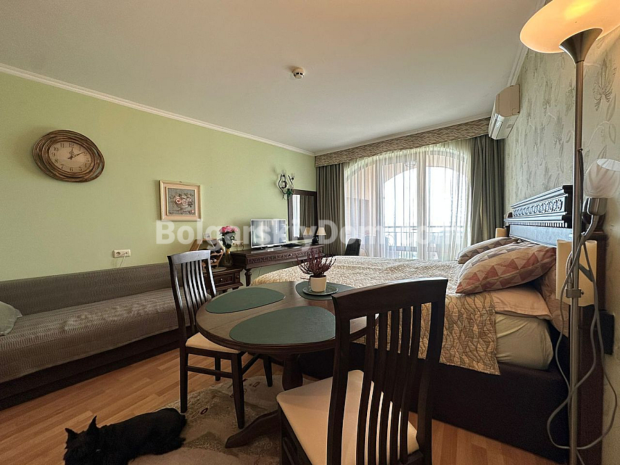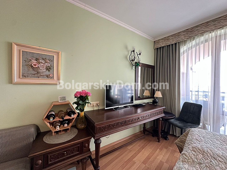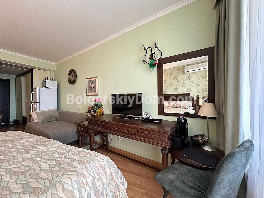 Bolgarskiy Dom Agency presents! Get ready for a deal that can truly change your life. For sale — an exclusive studio apartment with a direct, breathtaking sea view in the very heart of luxury: the Grand Hotel Sveti Vlas. This property on the 5th floor is a perfectly packaged, ready-to-move-in unit in immaculate condition. Warm tones, stylish design, a functional kitchenette and, most importantly, a panoramic terrace where the sea view literally flows into your room! It is an ideal asset for a high-yield investment with guaranteed growth potential and immediate rental income. The total area is 45 sq.m., and our agents are already waiting for your call!