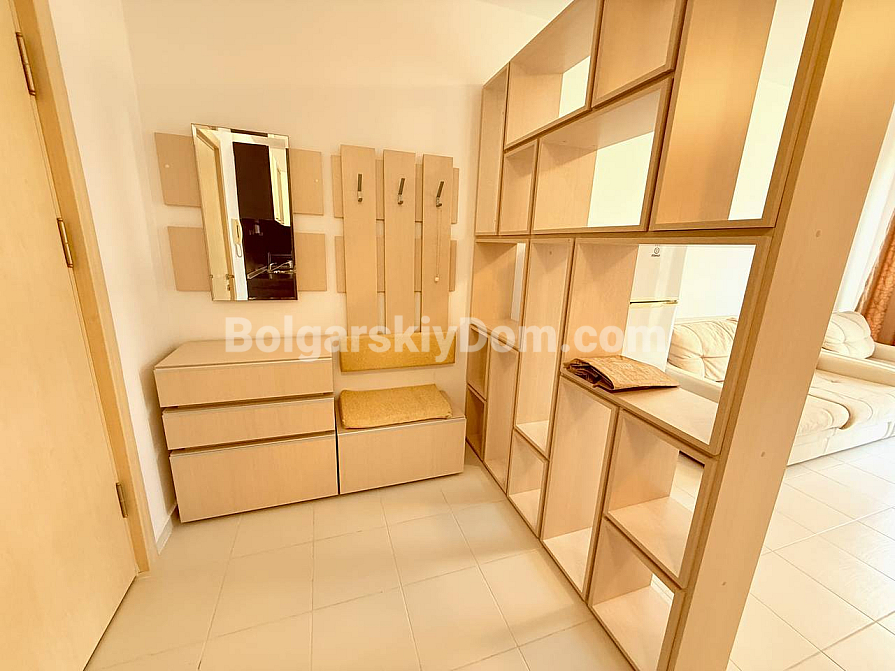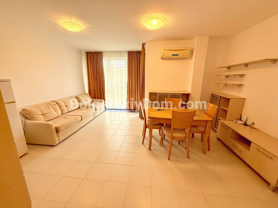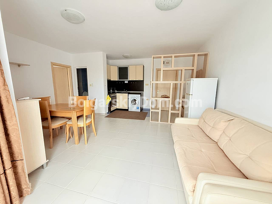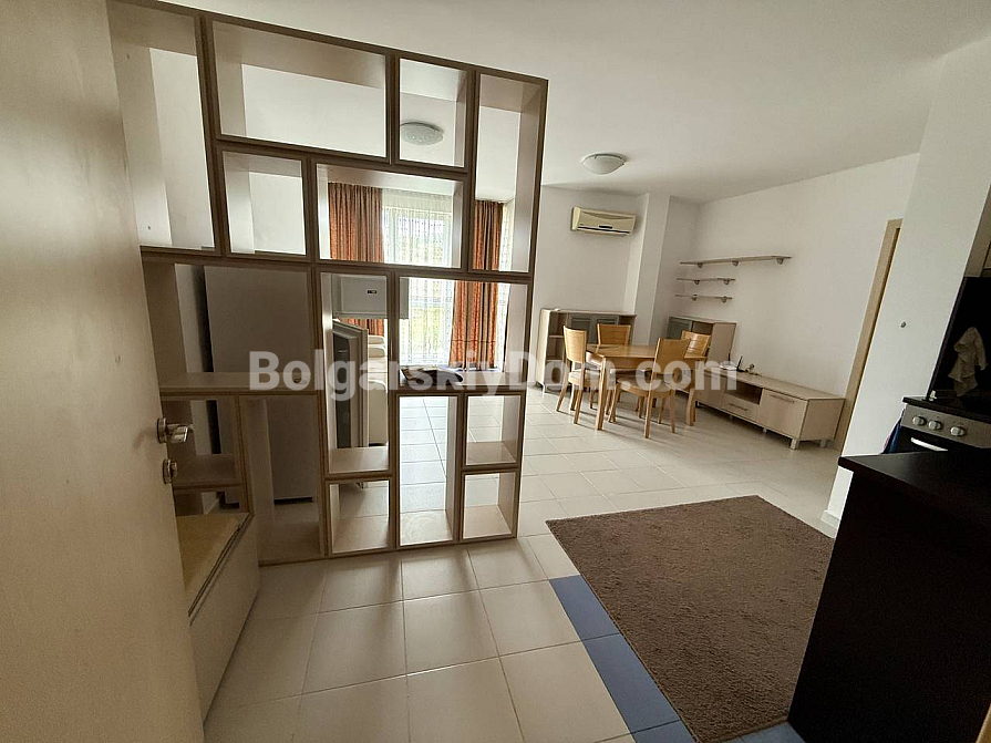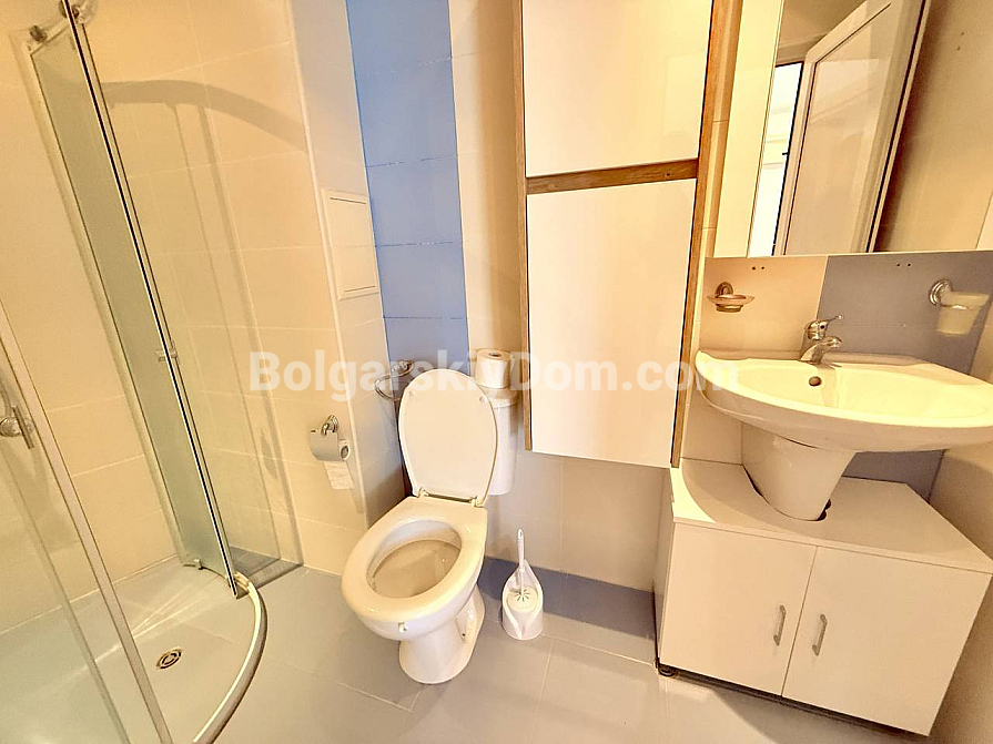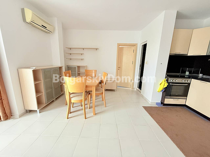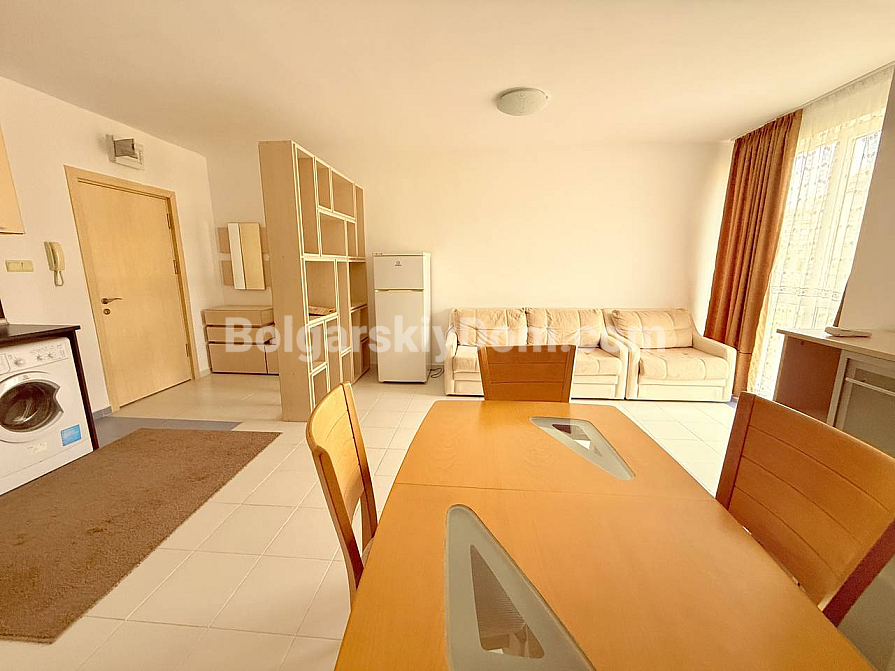 The perfect apartment in Sveti Vlas! Bolgarskiy Dom Real Estate Agency presents a stylish one-bedroom apartment with an area of 55 sq.m., located in a quiet yet prestigious part of the resort. This apartment on the third floor is your ready-to-move-in property: it is not just furnished but fully equipped with high-quality household appliances, eliminating any concerns about additional setup. The practical layout includes a separate bedroom, a functional kitchen-dining area, and a cozy terrace, making this home objectively ideal for comfortable living or carefree holidays.