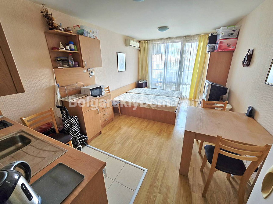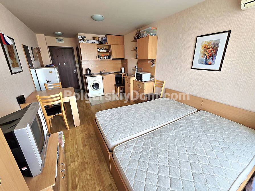 Forget about compromises — the ideal investment format has been found. Our new listing in Nessebar is a spacious 39 sq.m. studio in the Vigo complex. It’s a truly uncompromising option: first beachfront line, second floor, and a fully ready, furnished interior. We offer you both a home and a ready-made business model: take the keys and immediately rent it out or move in without any hassle. The functional layout, including a large sleeping area, kitchen, and balcony, is perfectly adapted to high demand. The studio is in a building with an elevator and is in excellent condition.