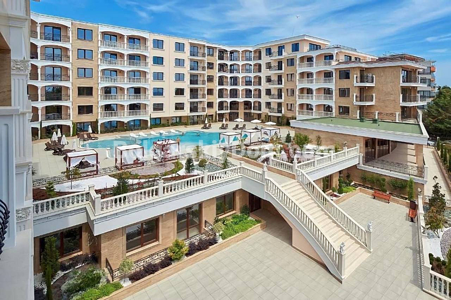 Valencia Gardens is a high-class complex with elegant architecture, located just 100 meters from the sea. It operates year-round, which significantly increases the liquidity of this property. The well-maintained territory includes a stylish swimming pool with a relaxation area, a modern gym, and spa zones. First-class service is provided here, including a 24-hour reception and security. The location in the new part of Nessebar, a UNESCO-protected city, near a well-maintained beach, combined with an advantageous maintenance fee of 10 euros, makes this offer even more attractive.