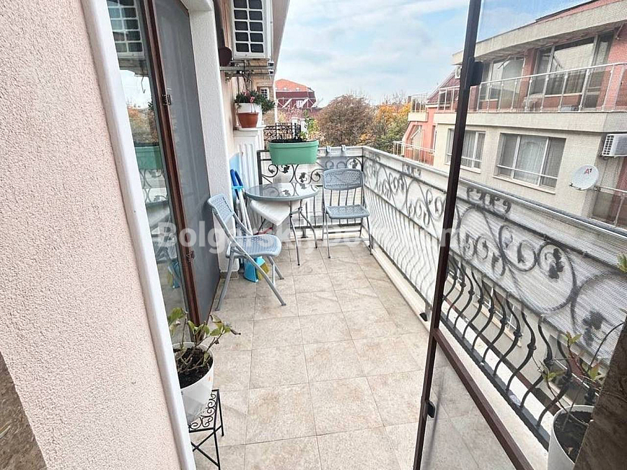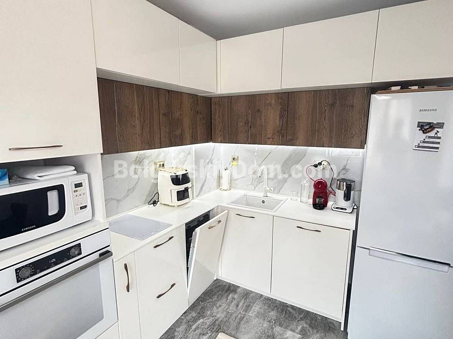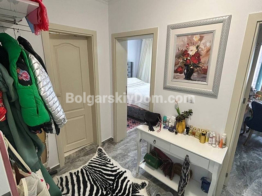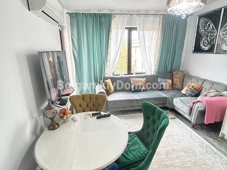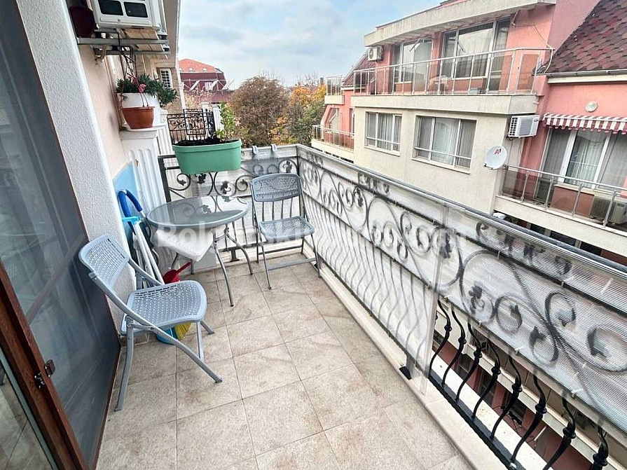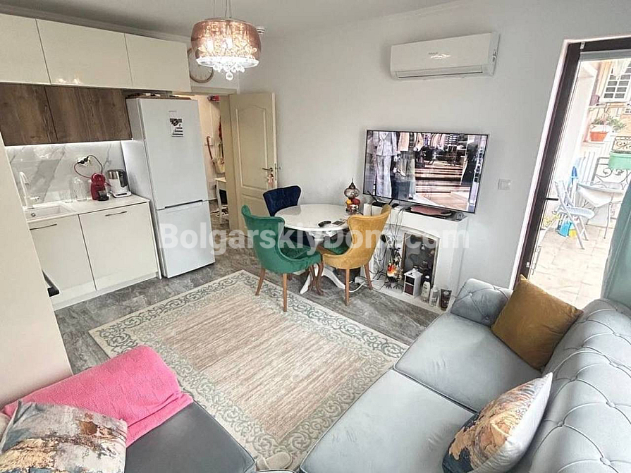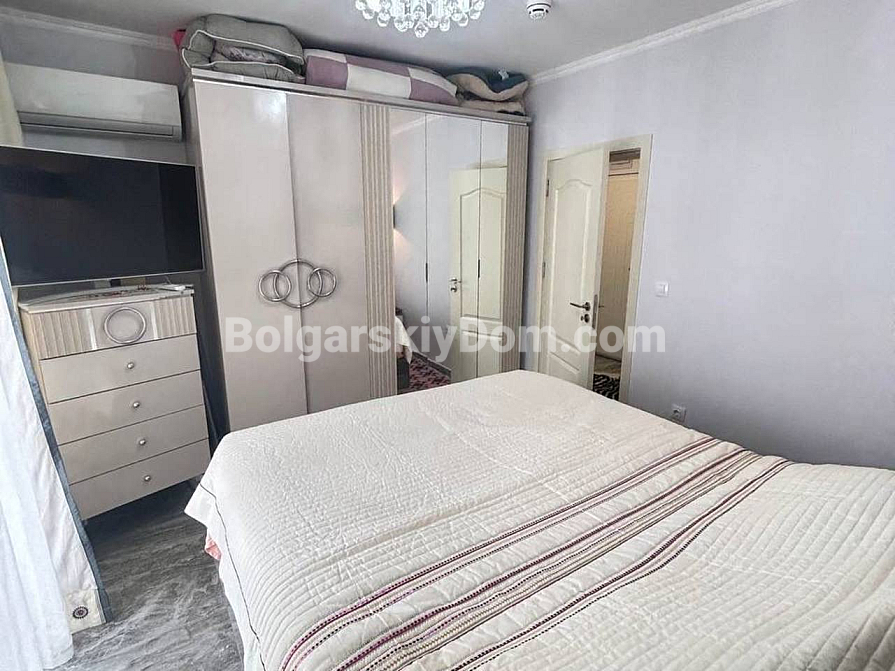 Premium offer in one of the most prestigious locations of Nessebar! Bolgarskiy Dom Real Estate Agency presents an elegant one-bedroom apartment with an area of 60 sq.m in the Valencia Gardens complex. The apartment is located on the 5th floor (with an elevator). The layout includes a stylish living room with a kitchen, a comfortable bedroom, a modern bathroom, and a balcony. The apartment is fully furnished and equipped with high-quality appliances, allowing you to use it immediately after purchase, whether for moving in with your family or offering it to tourists.