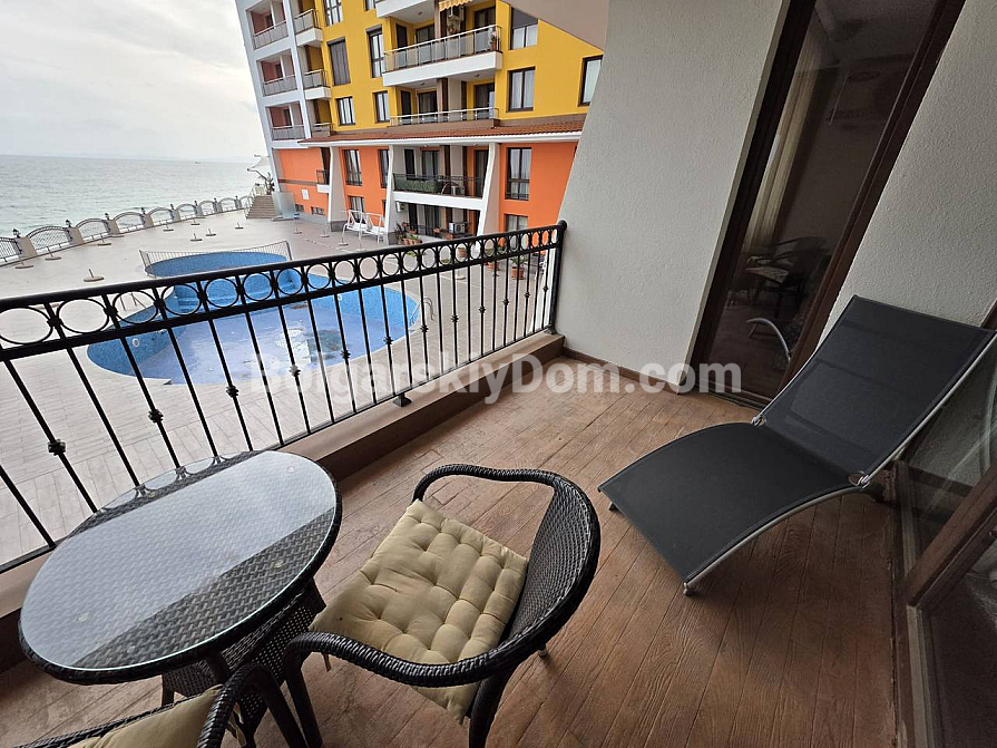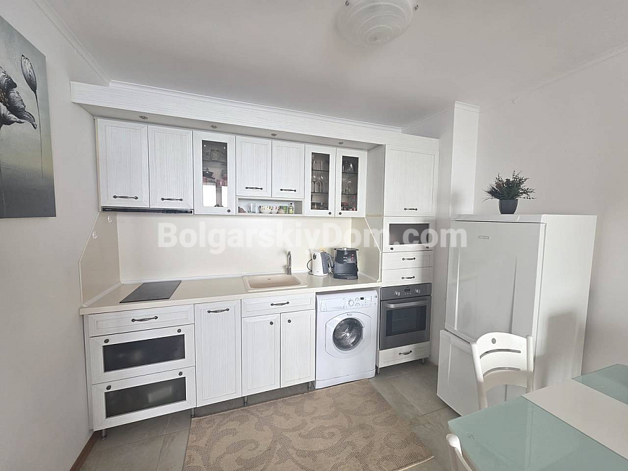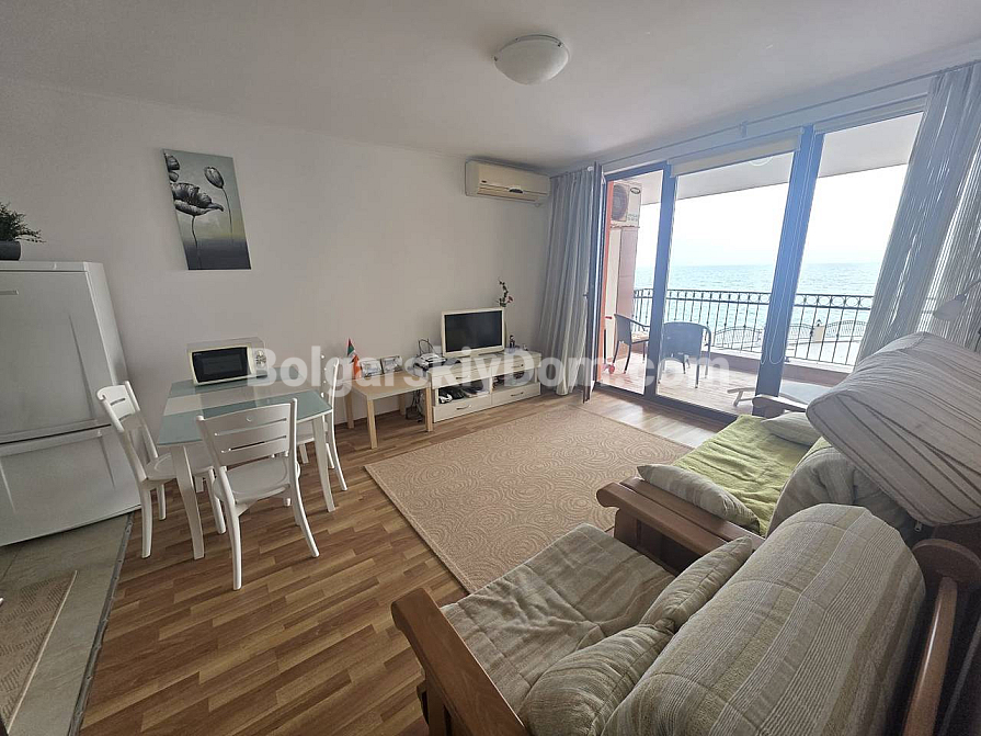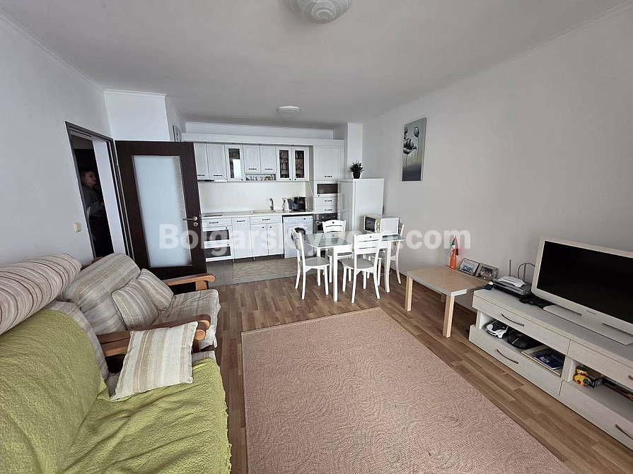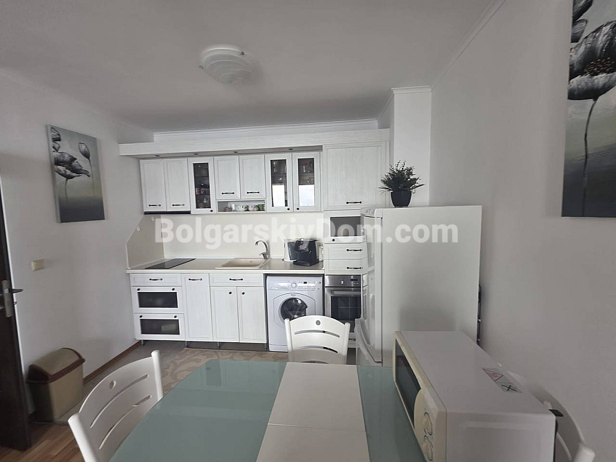 Sales have started for an all-season one-bedroom apartment on the first coastline of Nessebar! The Bolgarskiy Dom team is pleased to offer a 66.57 sq.m. apartment in the Mirage complex. The property is located on the second floor, and the terrace opens to panoramic views of the coastline and the sea. The layout includes an entrance hall, a living room with a kitchen area, and a separate bedroom. The apartment is offered fully furnished and equipped with appliances, ensuring immediate readiness for occupancy.