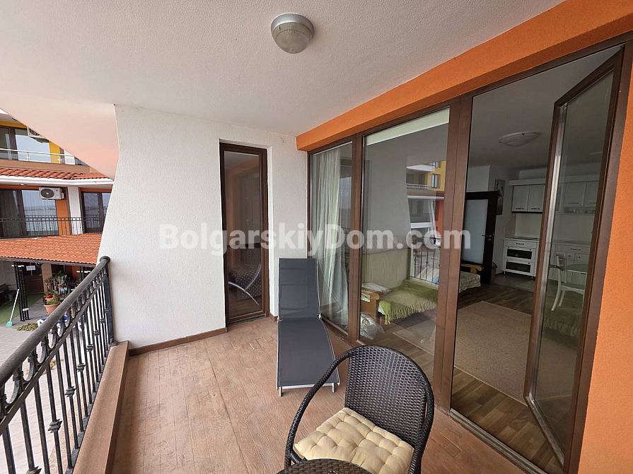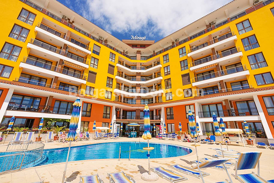 The Mirage complex is situated in a privileged sector of Nessebar, only 50 meters from a wide and clean beach. The internal infrastructure meets a high level of comfort: residents have access to a panoramic terrace with an outdoor pool, a lobby bar, a gym, as well as a SPA center (sauna and steam bath) and a children's playground. The annual maintenance fee is 10 euros per square meter. The proximity to the seafront with restaurants (five minutes on foot) and markets with fresh products provides comfortable living in a peaceful environment.