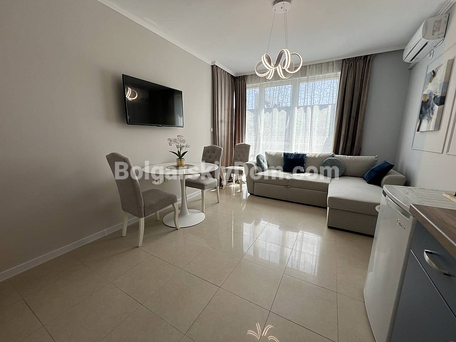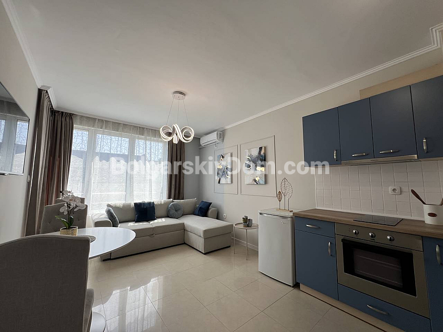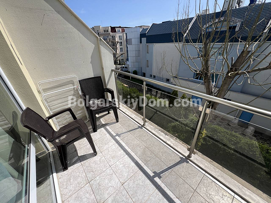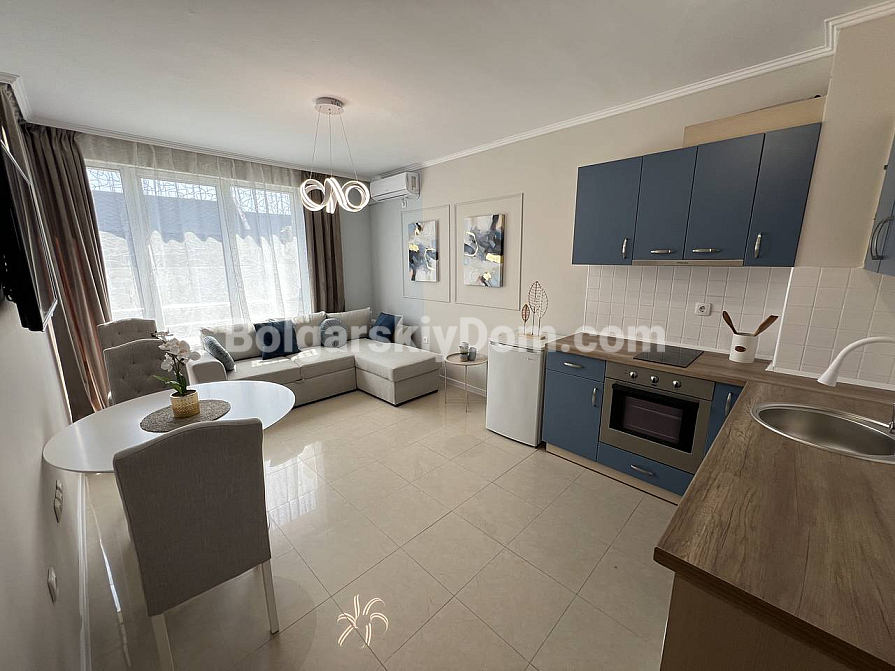 Liquid property on the second line of Sveti Vlas! The Bolgarskiy Dom real estate team offers a rational purchase option: a one-bedroom apartment of 50 sq.m. in the Blue Sky complex. The apartment is on the third floor and features a functional layout (living room with kitchen, separate bedroom, and terrace). The property is fully furnished and equipped with appliances, meaning you get a move-in ready solution. This is a compact option for active vacations or investment in the central part of the resort, as the complex is located in the top area between Dinevi and Yurta.