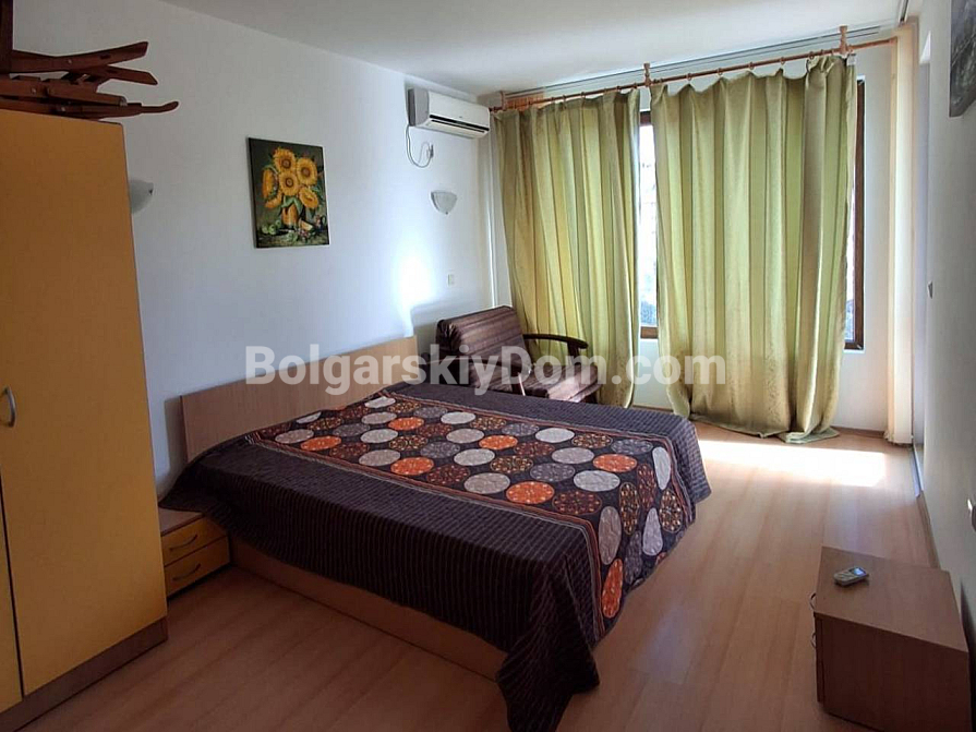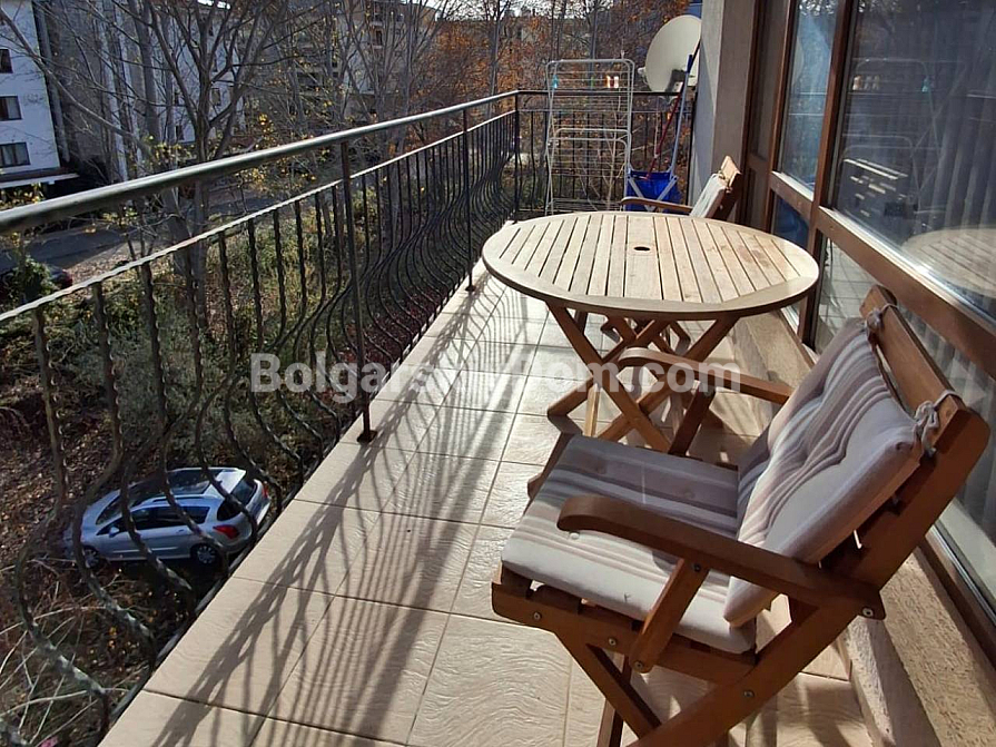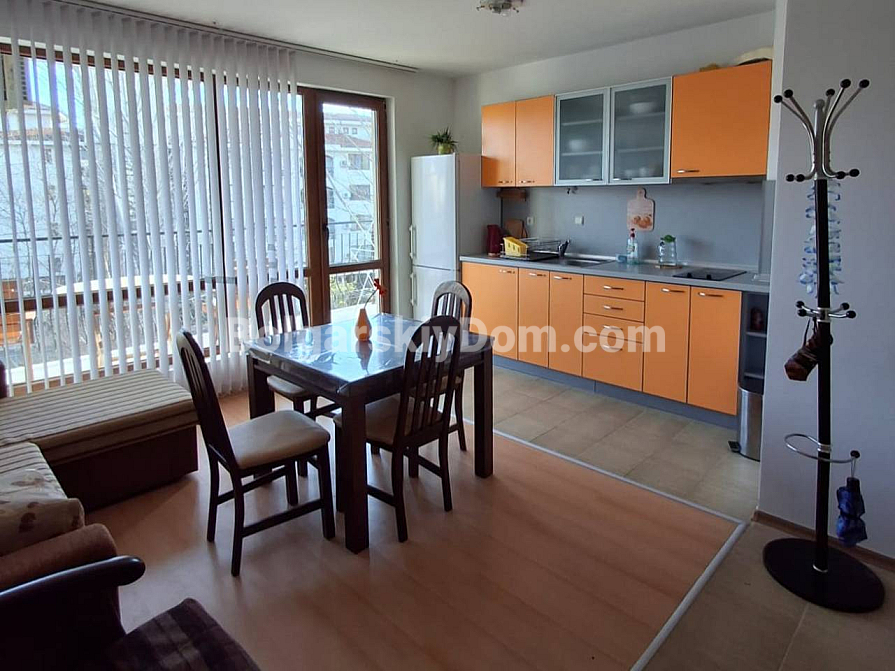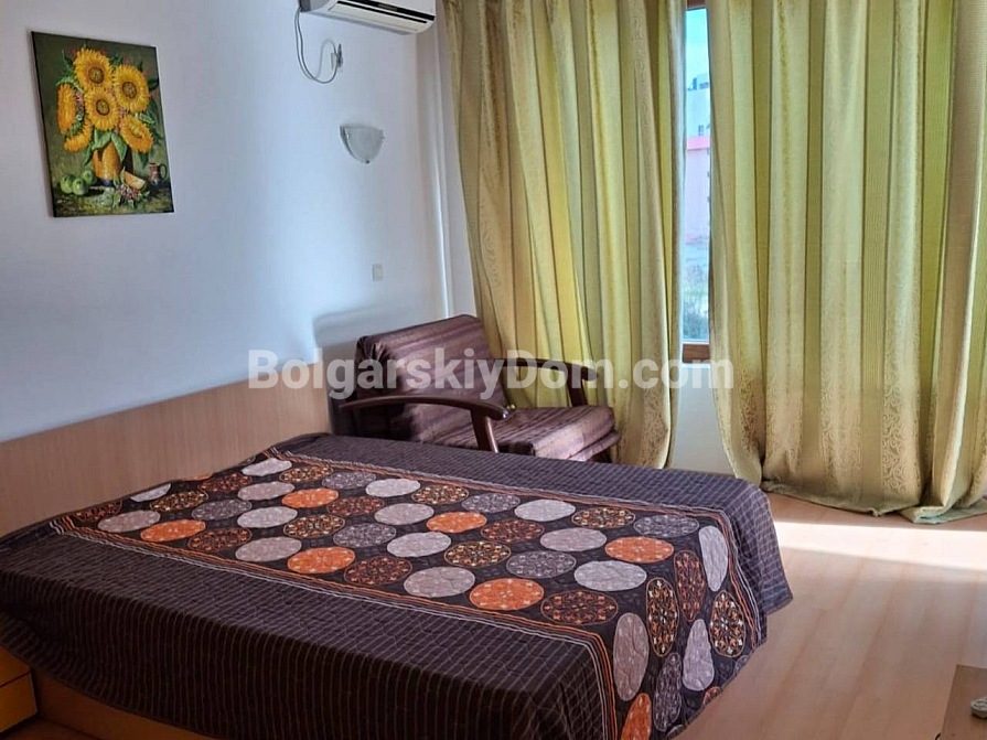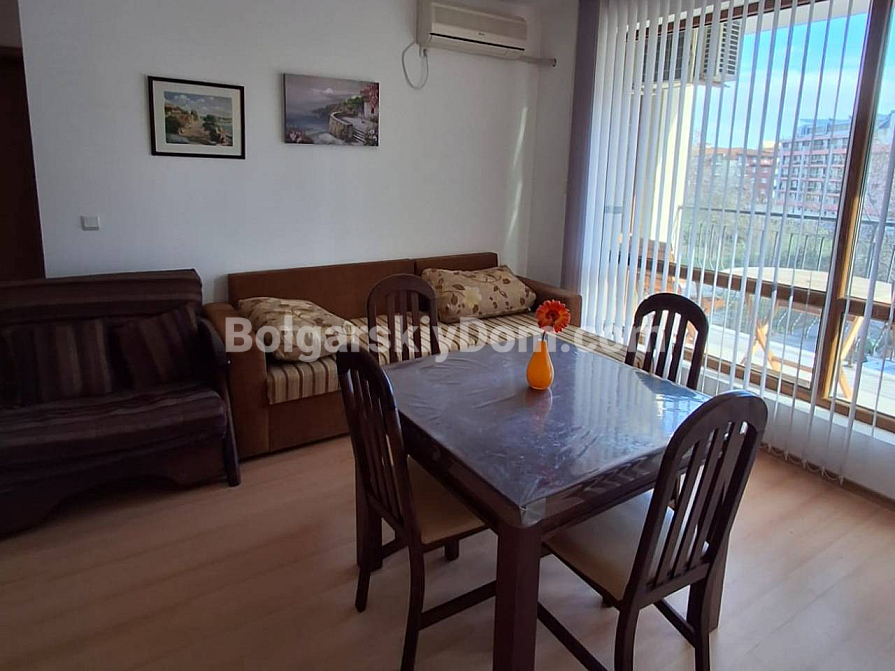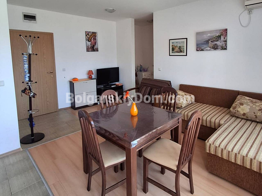 A unique combination: spacious apartment in a well-connected area, low maintenance fee, and household rates! The Bolgarskiy Dom catalog presents a profitable offer! This one-bedroom apartment with an area of 62.50 sq.m. is located in the cozy Diamond Bay complex. The property is on the 4th floor (with elevator) and features a functional layout: living room with kitchen, bedroom, bathroom, and balcony. The apartment is sold fully furnished and equipped with appliances — ready for immediate living or rental.