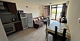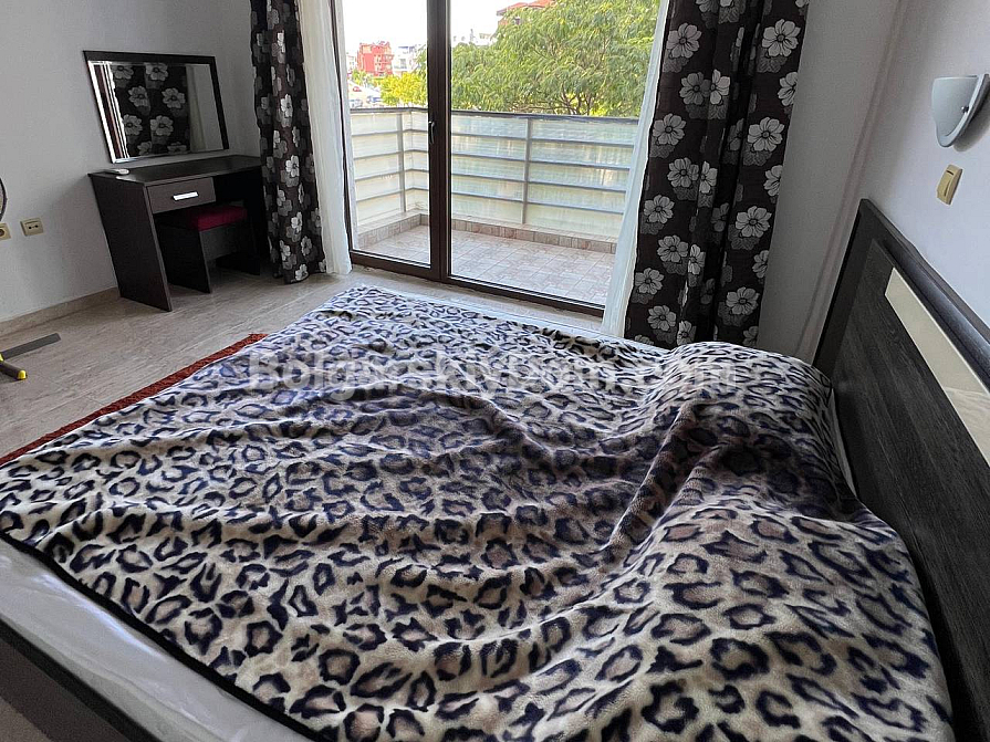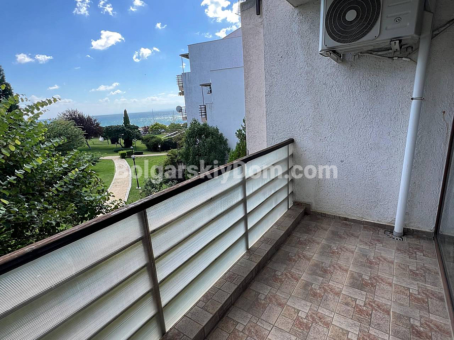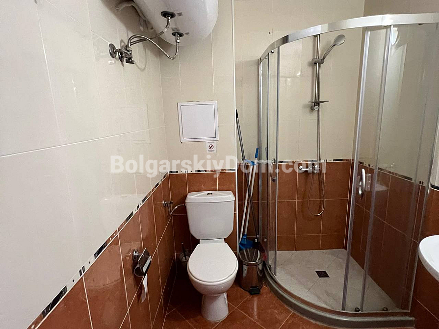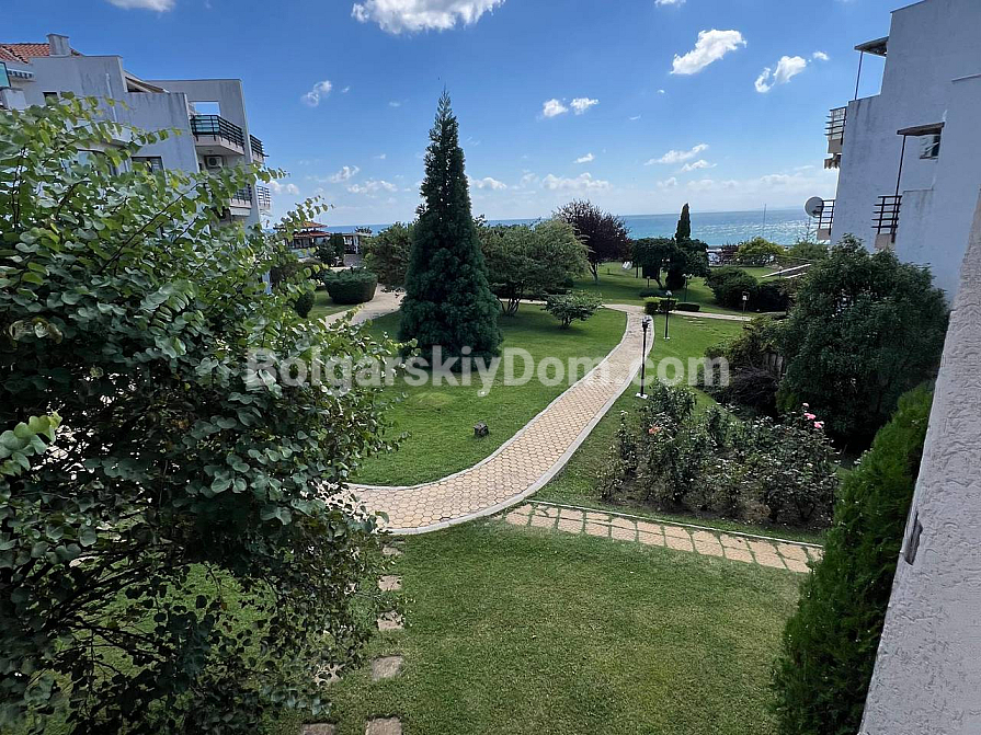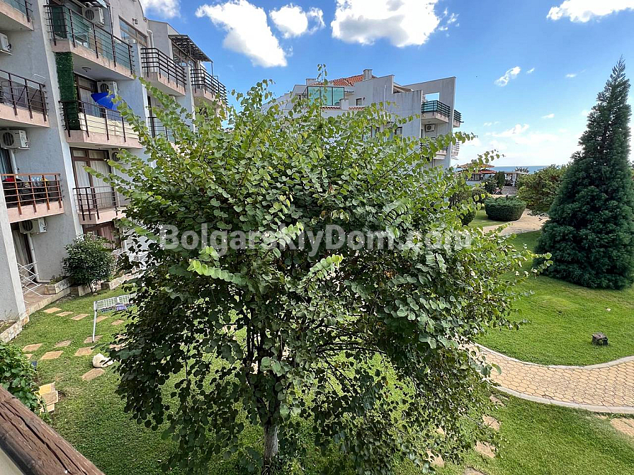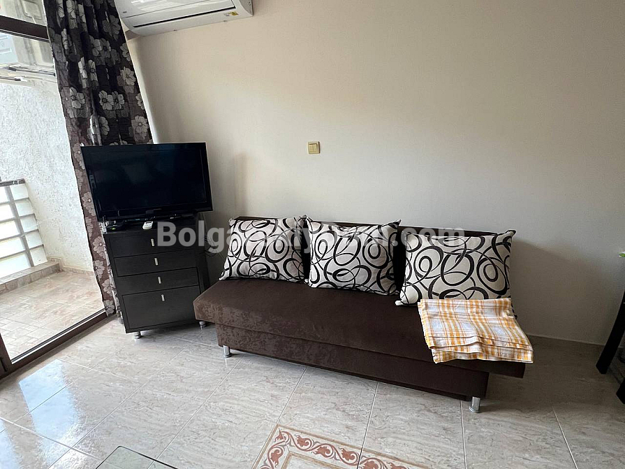 A new addition to the luxury segment of our catalogue! Among the most prestigious listings of Bolgarskiy Dom is a one-bedroom apartment in the Diamant complex, the top-class resort of Saint Vlas. The apartment has an area of 62.45 sq.m. and is located on the 2nd floor. It is sold fully furnished and equipped, ready for immediate move-in. The layout is well thought out: a bright living room with a kitchen, a bedroom, and, notably, two terraces! One overlooks the well-maintained courtyard, while the other offers a partial sea view.