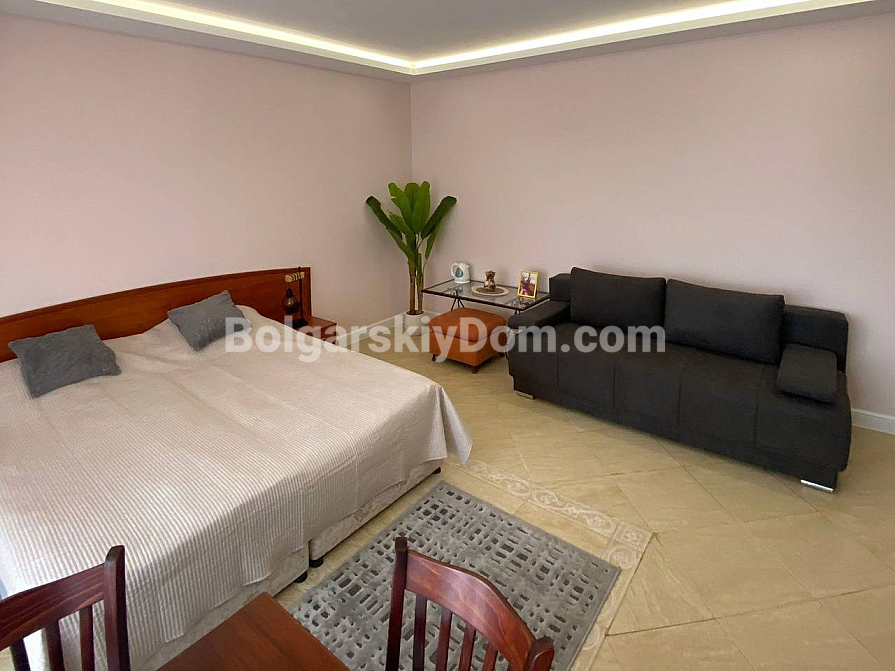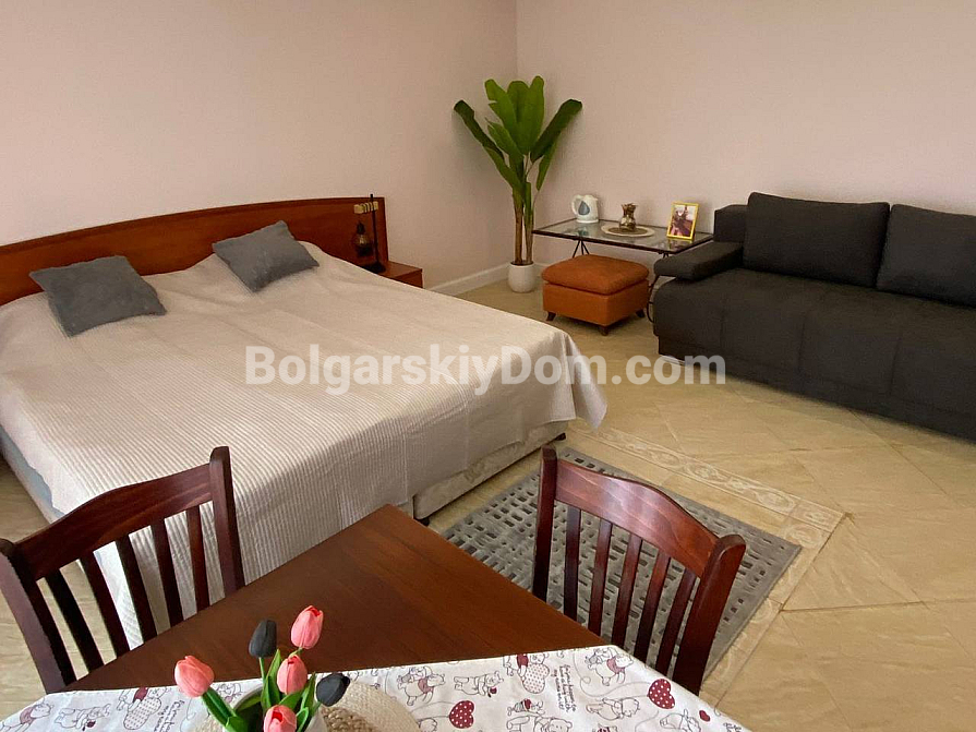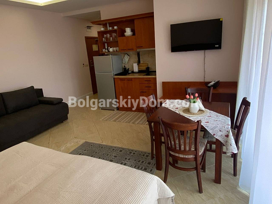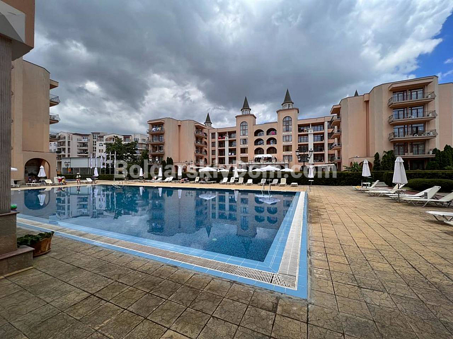 The complex is located in the southwestern part of Sunny Beach, just 300 meters from the beach and the sea. It’s an ideal location combining proximity to the coast with well-developed infrastructure: a supermarket, restaurants, cafés, and summer attractions are all nearby. The complex offers excellent infrastructure: two large swimming pools with children’s sections, a restaurant, a bar, parking, and relaxation areas. There is also a nearby park. Maintenance is provided at a standard rate of 12 euros per sq.m.