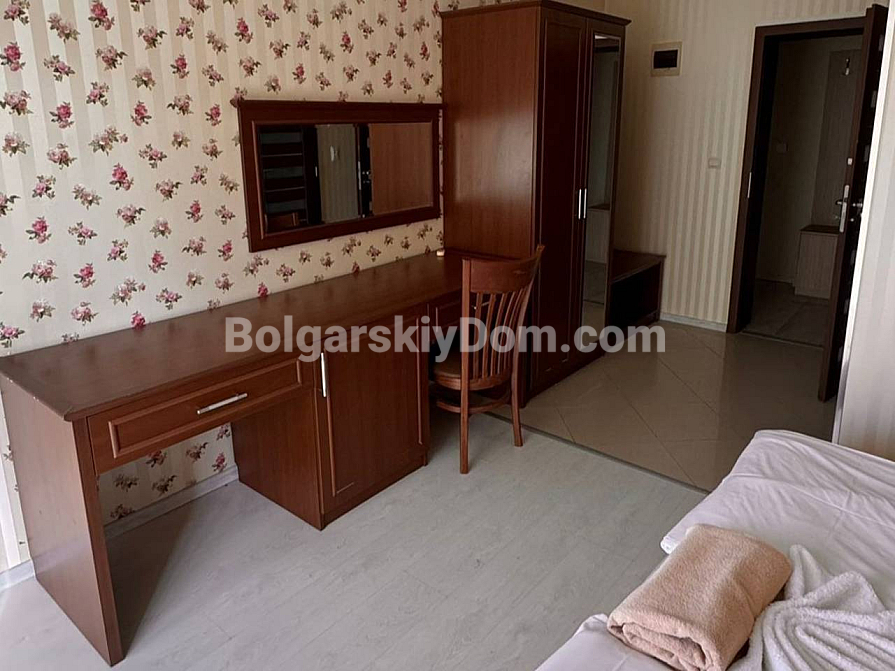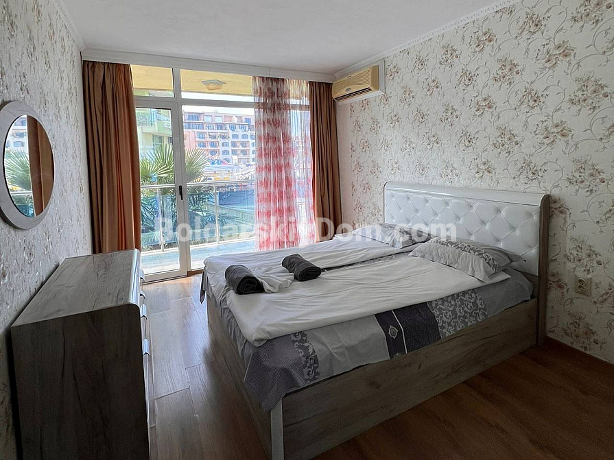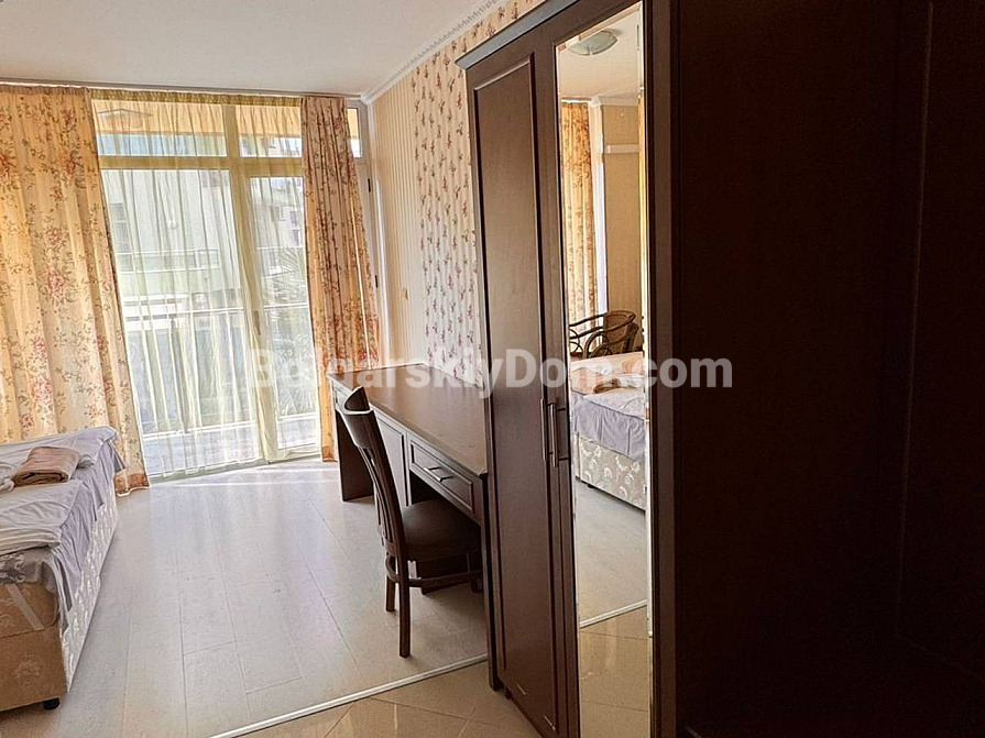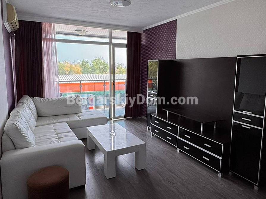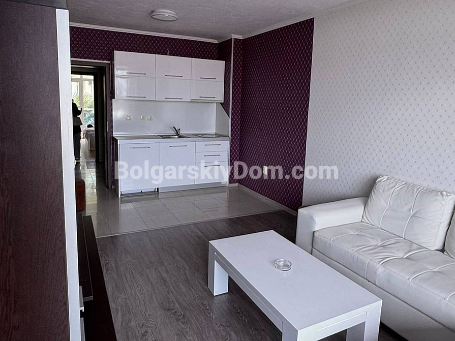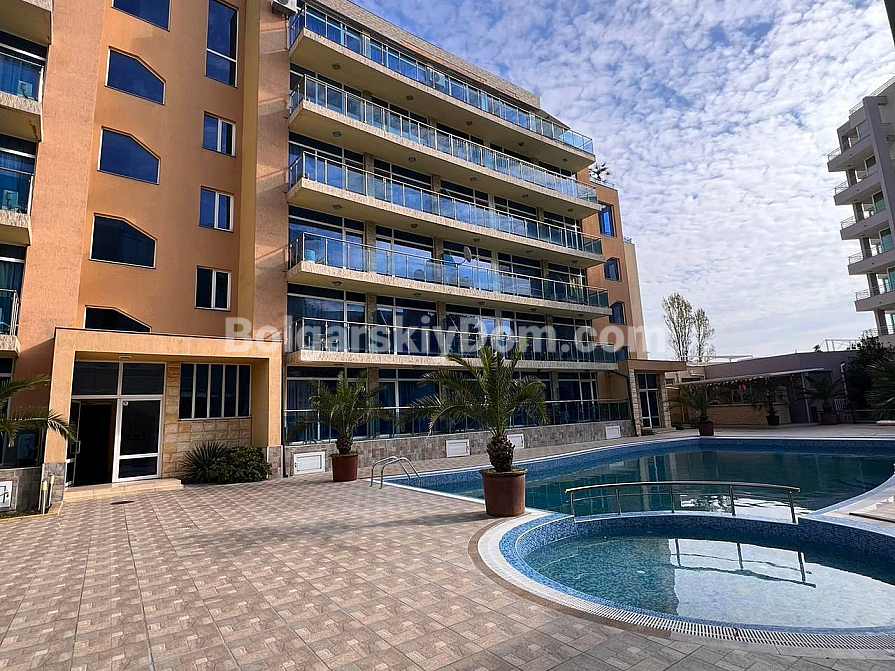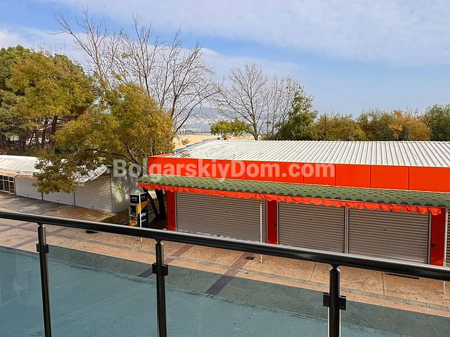 A new addition to the panoramic listings! Among the most attractive offers of Bolgarskiy Dom in Sunny Beach is this spacious two-bedroom apartment. We present a property with an area of 101 sq.m. in the Gallery 2 complex. The apartment, located on the 2nd floor, offers excellent functionality: a bright living room with a kitchen, two separate bedrooms and two fully equipped bathrooms with shower cabins. And the main highlight — two spacious terraces! One overlooks the pool and inner courtyard, while the other faces the street with a partial sea view.