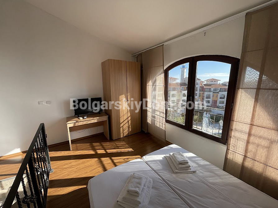 Marina Cape in Aheloy is a self-contained mini-town with unique architecture and a peaceful atmosphere. It has a gated territory, its own pools, restaurants, and walking areas, making it the perfect refuge from the noise of larger resorts. The maintenance fee of €12 per sq.m. fully justifies the level of service and the well-maintained grounds all year round.