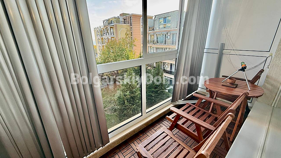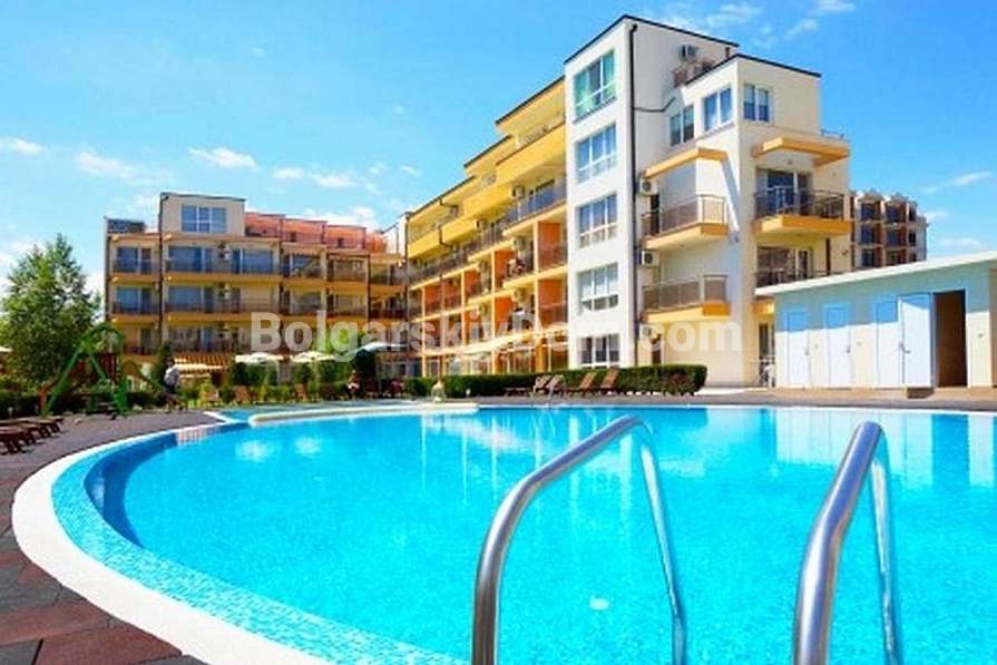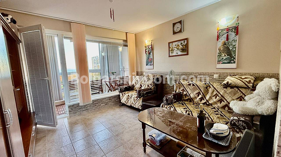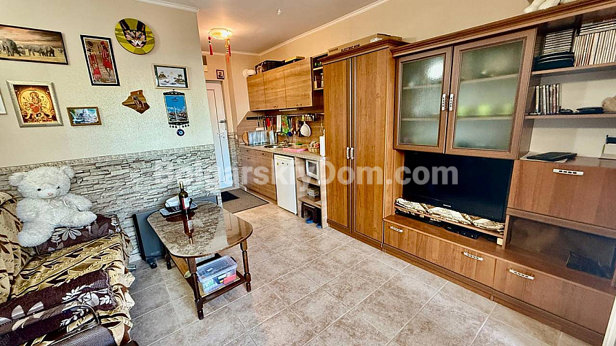 Urgent offer: a sea-view studio with a total area of 33 sq.m. located on the 4th floor in the cozy Anna Marina complex in Sveti Vlas. The main highlight of this apartment is its private enclosed terrace with a direct sea view. The studio is sold fully furnished and equipped with appliances, completely ready for owners or tourists with no additional investment required. The layout is practical and comfortable: a living room with kitchen and sleeping area, and a bathroom. The building is commissioned (Act 16) and equipped with an elevator.