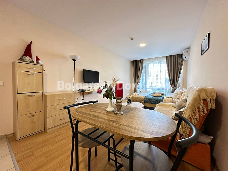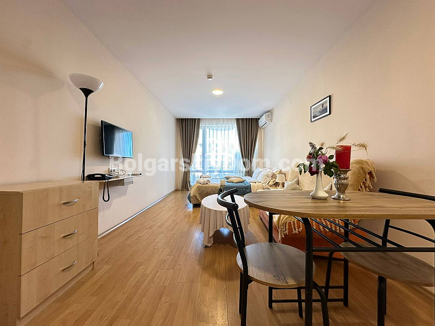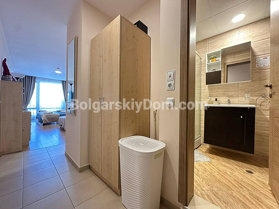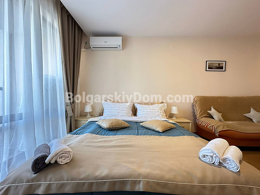 A studio apartment on the first line of the sea in the premium complex of St. Vlas is a rare format where the comfort of living coincides with a high rental income. 48 square meters, the second floor of five is the ideal height: close enough to the sea to feel its breath, and high enough for privacy. The studio space is designed so that it is convenient to live here yourself and easily rent to guests: light, functional, without extra meters and empty parts. The apartment has areas that seamlessly merge into one anoth: a functional kitchen - dining room (dining area) - a place to relax - a sleeping area. The terrace offers a breathtaking seascape.