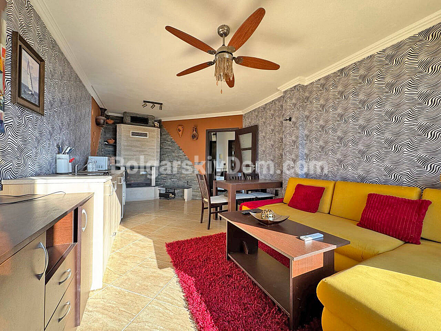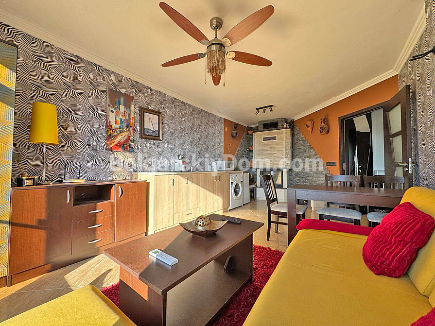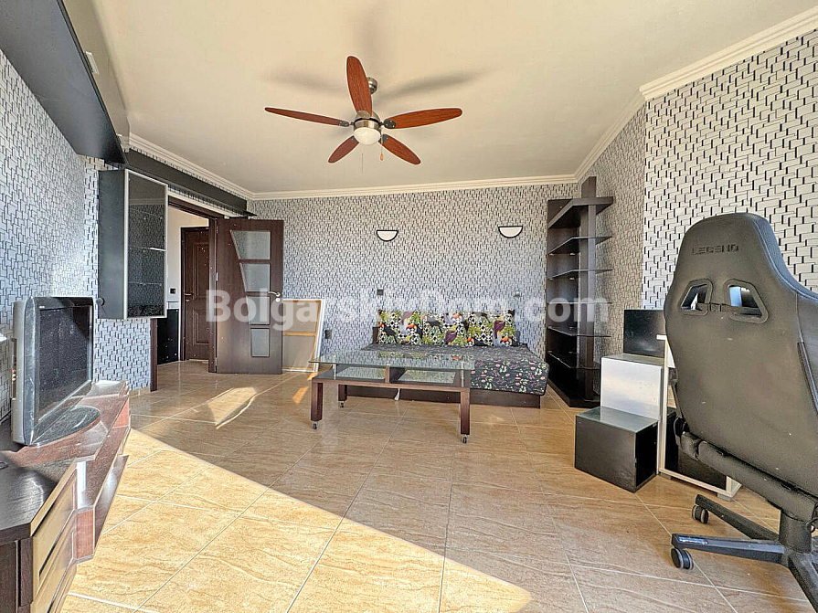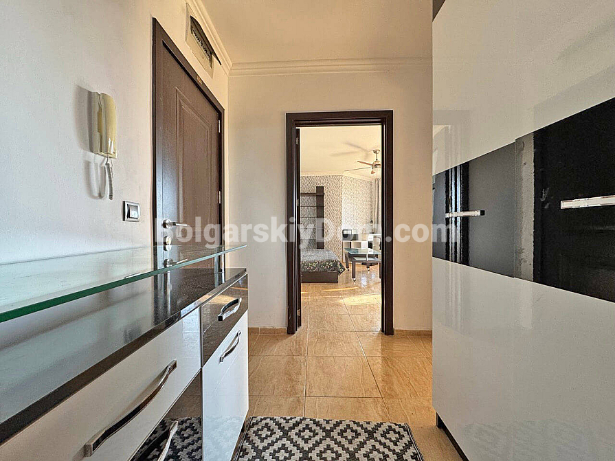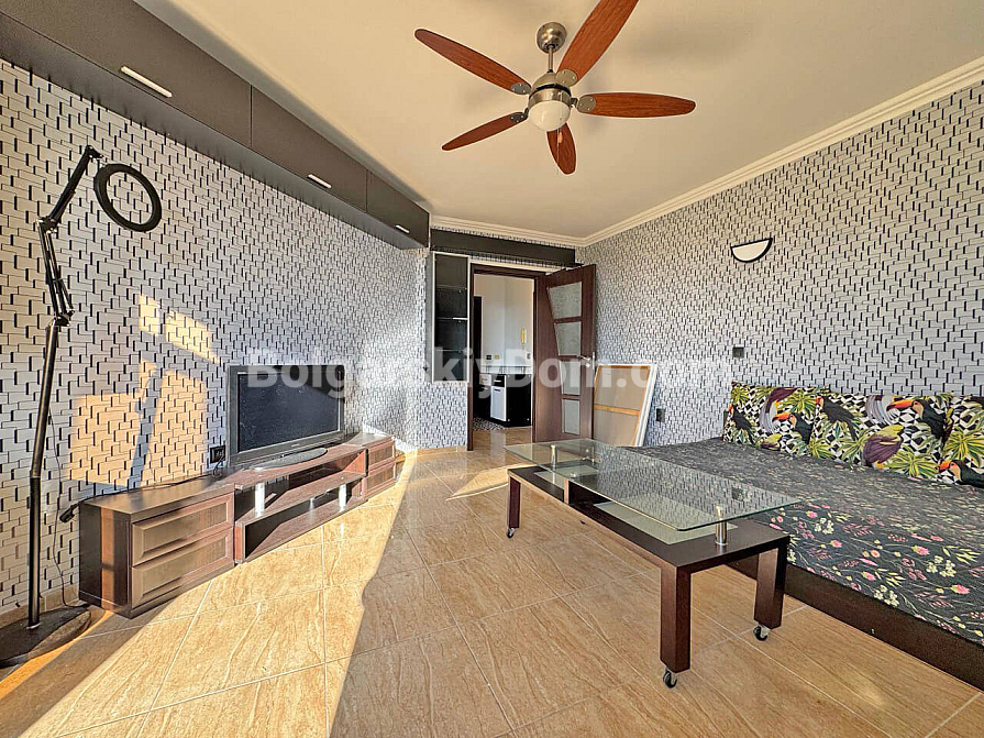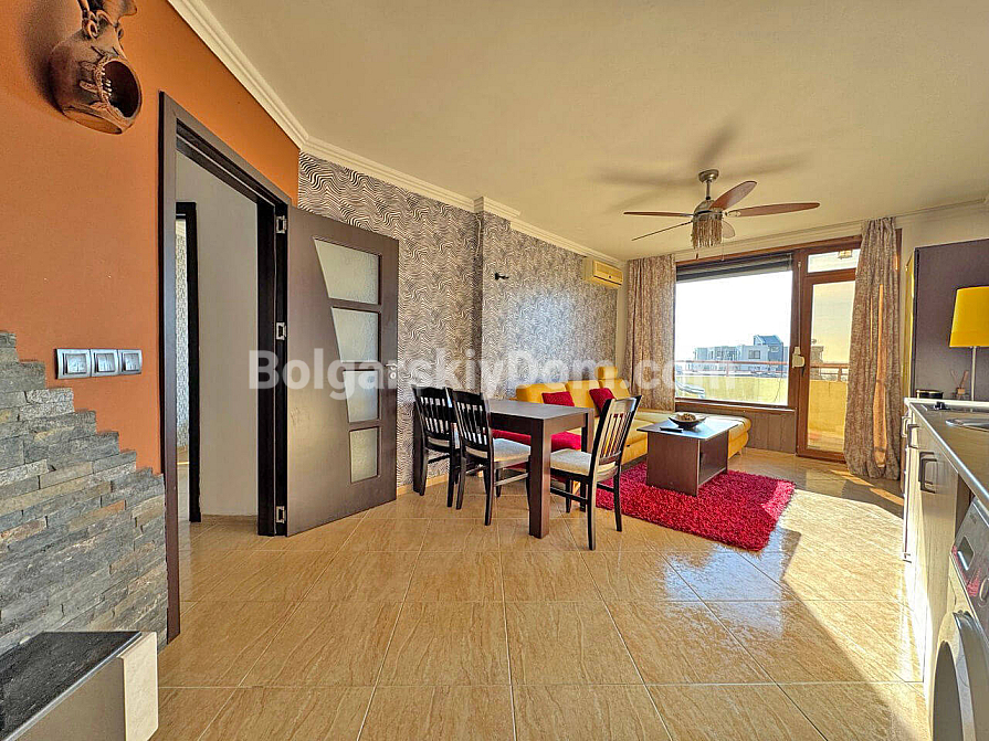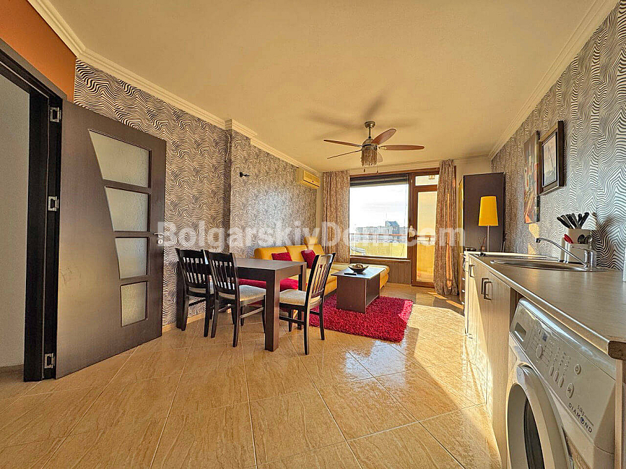 New addition to our resale property catalog. Starting today, you can become the happy owner of a cozy one-bedroom apartment in the Villa Antonia complex — a location known for its intimate atmosphere and peaceful lifestyle in Saint Vlas. The apartment has a total area of 61 sq.m. and is situated on the sixth floor, offering partial sea views from two balconies. The layout is thoughtfully designed with comfort in mind: a spacious living room combined with a kitchen, and a bedroom featuring a dedicated workspace area, which is especially relevant today. The property is in excellent condition and fully furnished and equipped with appliances, allowing you to move in without any extra hassle.