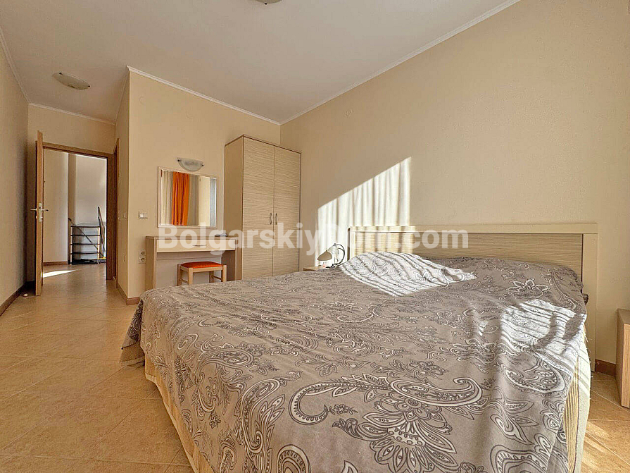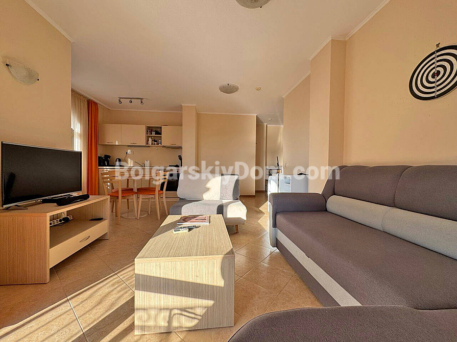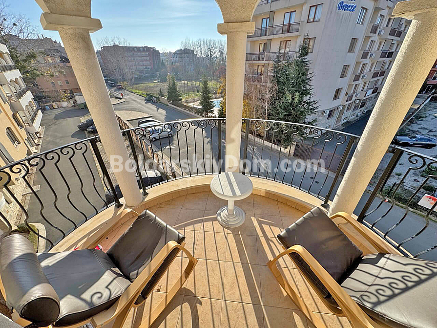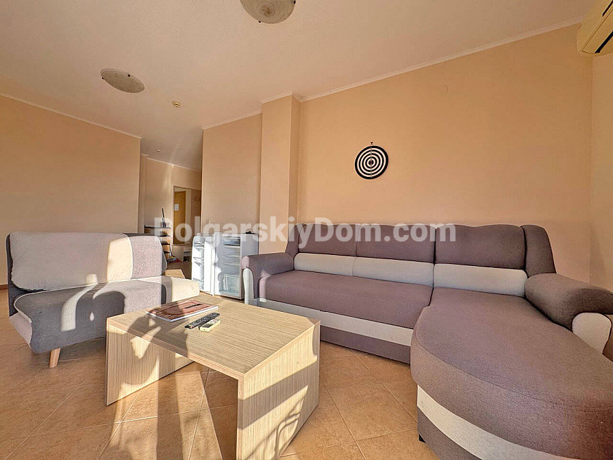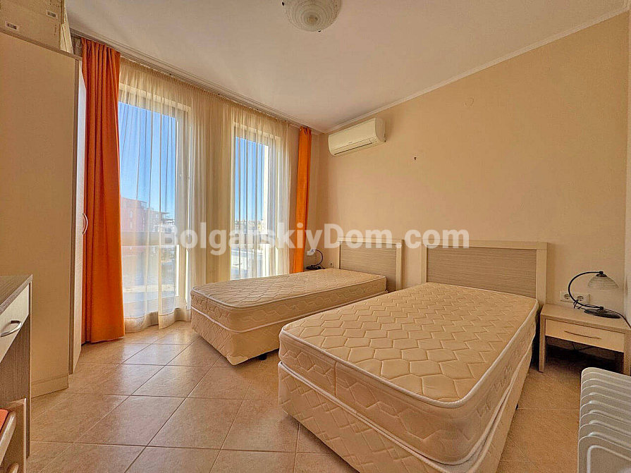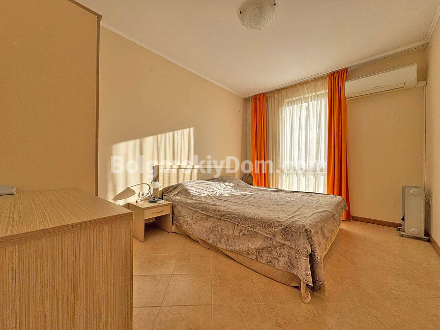 New listing. A family two-bedroom apartment in Royal Sun, one of the most sought-after complexes in Sunny Beach, is now available in the Bolgarskiy Dom catalog and ready for viewings. This spacious 93 sq.m. apartment impresses at first glance with its generous layout: a large living room, two separate bedrooms, and a rare but highly valuable feature — two full bathrooms. Special attention should be given to the large semi-circular balcony, which is sure to become your favorite spot for morning coffee. The apartment is located on the fourth floor, fully furnished and ready to move in, with no need for renovation or additional appliance purchases.