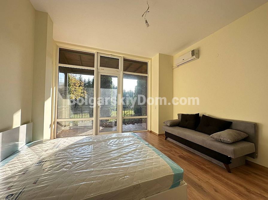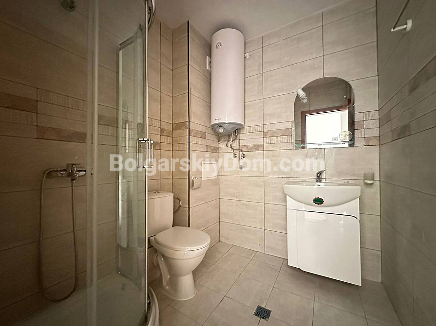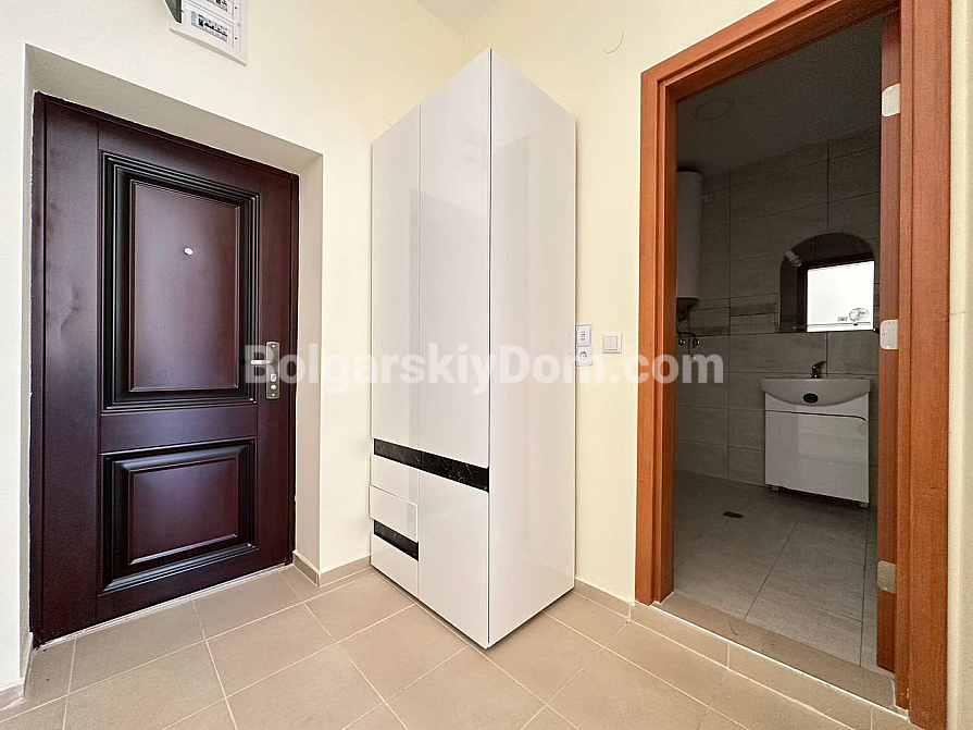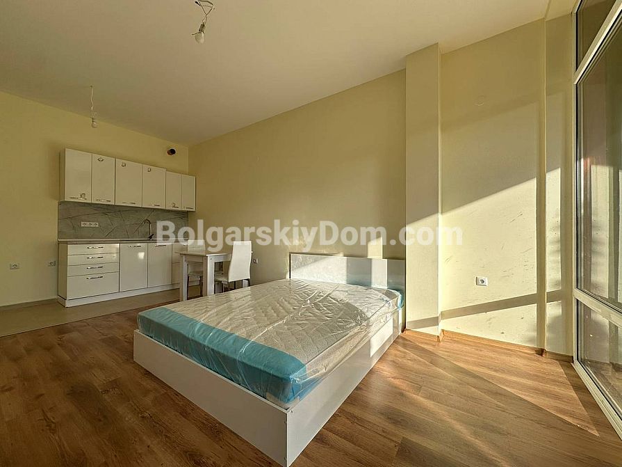 New addition to the secondary market with installment options in Sunny Beach! In the Orchid Fort Garden complex, a property has appeared that breaks the stereotype of cramped resort housing – a spacious studio of 50.5 sq.m. This is comparable in size to a full two-bedroom apartment, where you definitely won’t feel “boxed in.” The apartment is located on the high first floor, giving the pleasant feeling of a countryside home: your south-facing terrace overlooks a quiet inner courtyard rather than a noisy street. The layout is smart and functional: there is a proper hallway (rare for studios!), a spacious bathroom, and a bright living area with a kitchen.