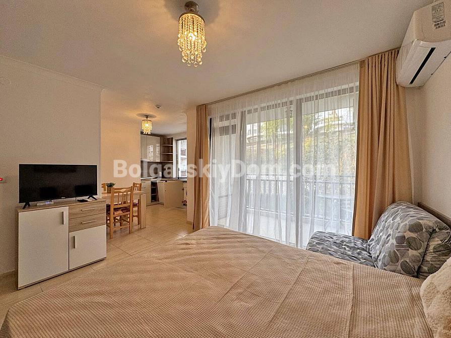 A new listing where the location speaks for itself. This studio is located in the Arena complex, rightfully considered the epicenter of social life in Saint Vlas. Just 100 meters from the shoreline and only a couple of minutes’ walk to the famous Marina Dinevi yacht port. Despite its compact size of 37 sq.m., the space is very well organized. The smartly zoned apartment is situated on the third floor and includes a kitchen area as well as a full-fledged living and sleeping zone. The apartment is sold furnished, and the spacious balcony overlooking the inner territory is a perfect spot to relax. For those considering the purchase as an investment, this is one of the most in-demand rental options on the entire coast thanks to its proximity to the marina.