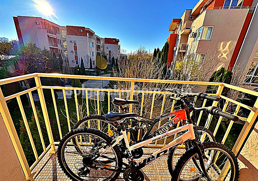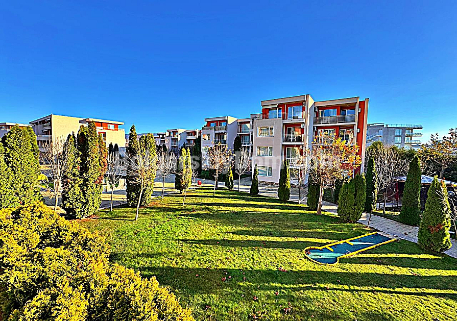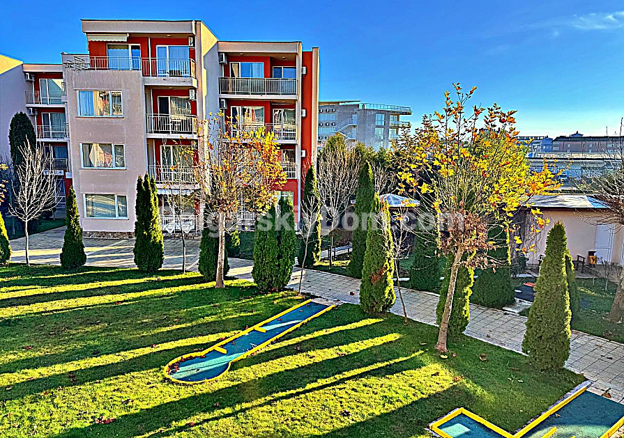 The Nessebar Fort Golf Club complex, located in the western part of Sunny Beach, has long been a benchmark for quality management and rich infrastructure. It offers everything: professional golf courses, multiple swimming pools, restaurants, a fitness center, and even a medical office on site. The location is ideal for an active lifestyle — only 450 meters to the resort center, close to a large water park and supermarkets, and a 10–15 minute walk to the beach. The building holds Act 16, and electricity and water are billed at standard residential rates.