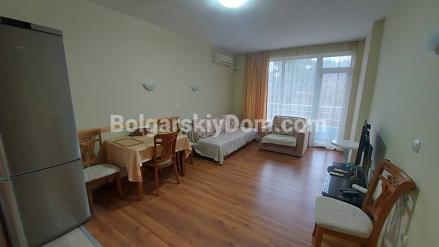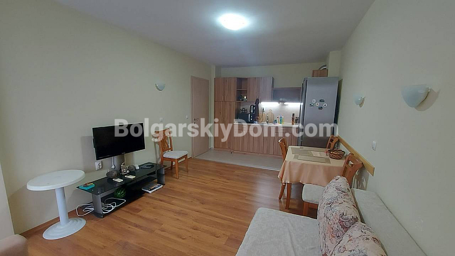 The Bolgarskiy Dom team is pleased to present a new listing in the southern part of Sunny Beach — a spacious one-bedroom apartment with a total area of 59 sq.m. The property is located on the fourth floor of a building with an elevator and features a proper entrance hall, a large living room with a kitchen area, and a truly spacious bedroom. The apartment also has a cozy balcony with a relaxation area, perfect for warm evenings. It is sold fully furnished and equipped with household appliances, so the new owners won’t need to invest time or money in furnishing. Would you like to book an online viewing or receive a rental yield calculation? Message us.