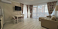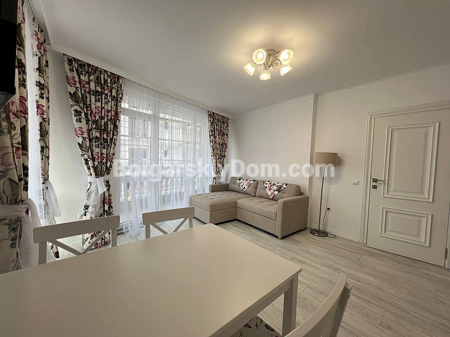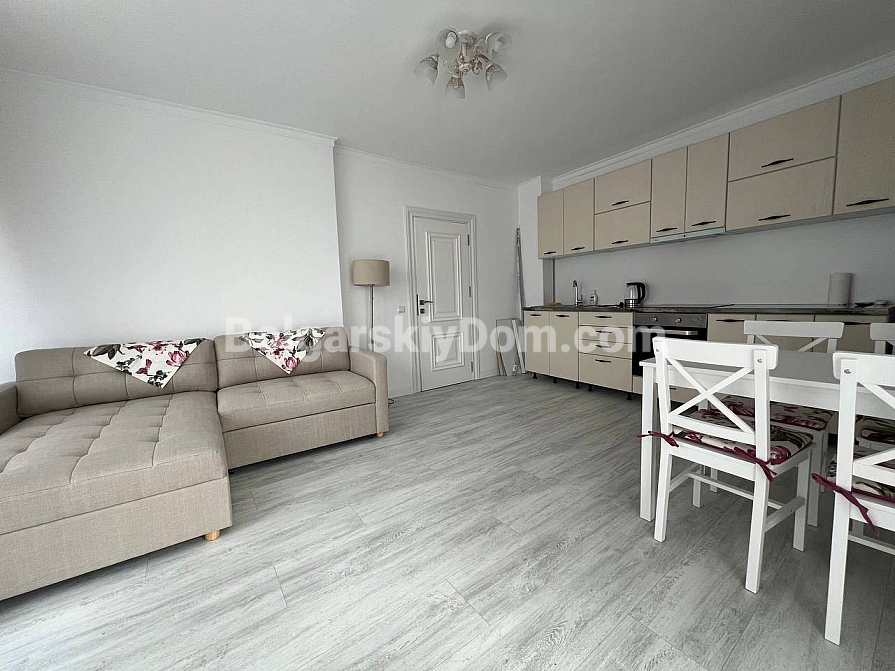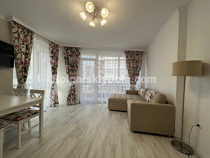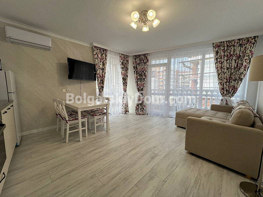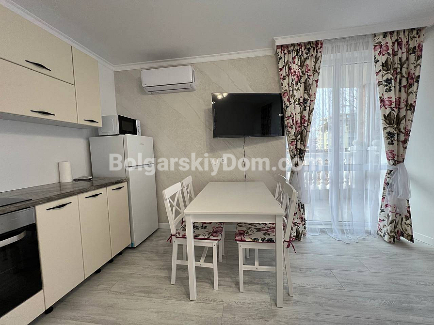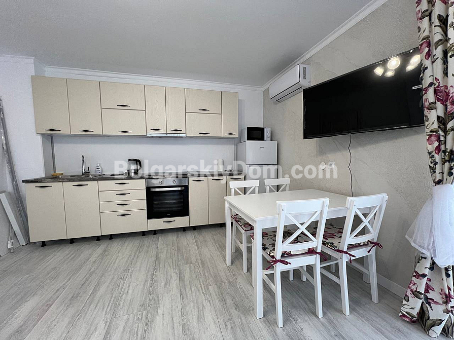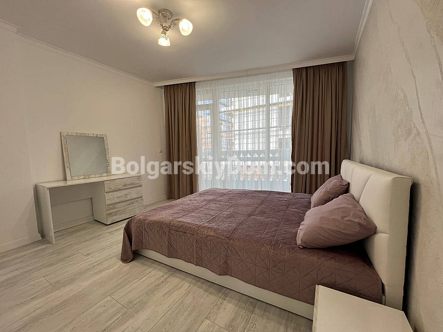 Sunny Beach, a top resort and an excellent location! The Bolgarskiy Dom team presents a spacious one-bedroom apartment with a total area of 70 sq.m., located in the Magnolia 7 residential complex. The apartment is situated on the second floor and welcomes its new owners fully furnished — a modern renovation in calm, neutral tones has already been completed. Layout: a bright kitchen-living room with a dining area smoothly transitions into a comfortable relaxation space, while the separate bedroom is equipped with a large bed. The apartment is fully equipped with all necessary household appliances, including air conditioning and a washing machine in the modern shower room. Both rooms have access to a balcony, which can be arranged as an additional cozy spot for morning coffee in the fresh air. Would you like to book a personal viewing or arrange an online meeting? Contact us!