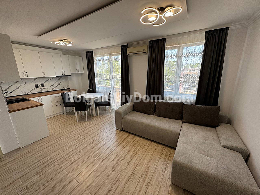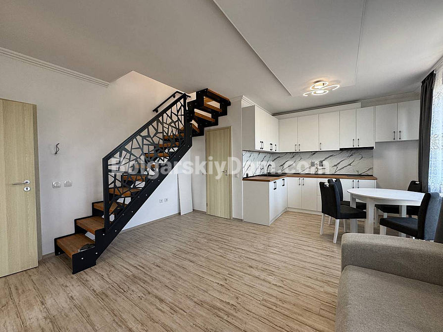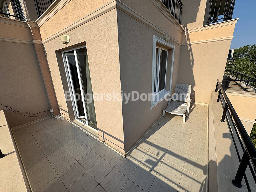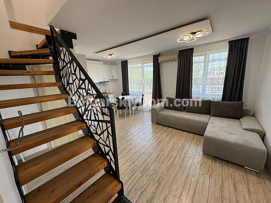 Bolgarskiy Dom presents an offer for those who appreciate truly spacious living: a duplex apartment in the southern part of Sunny Beach. The total area of 120 sq.m. is distributed across the sixth and seventh floors, creating the feeling of a full-fledged home rather than just an apartment. The layout includes a spacious living room with a kitchen area, two separate bedrooms, and two relaxation zones in the form of a balcony and a large terrace. The property is fully furnished and equipped with appliances, and the presence of Act 16 allows the transaction to be completed and the apartment to be occupied in the shortest possible time without additional renovation costs. This is a solid resale property that maintains high liquidity thanks to quality construction and a well-thought-out layout.