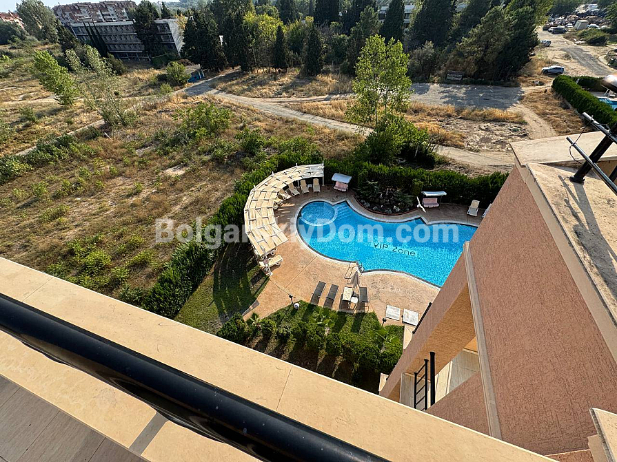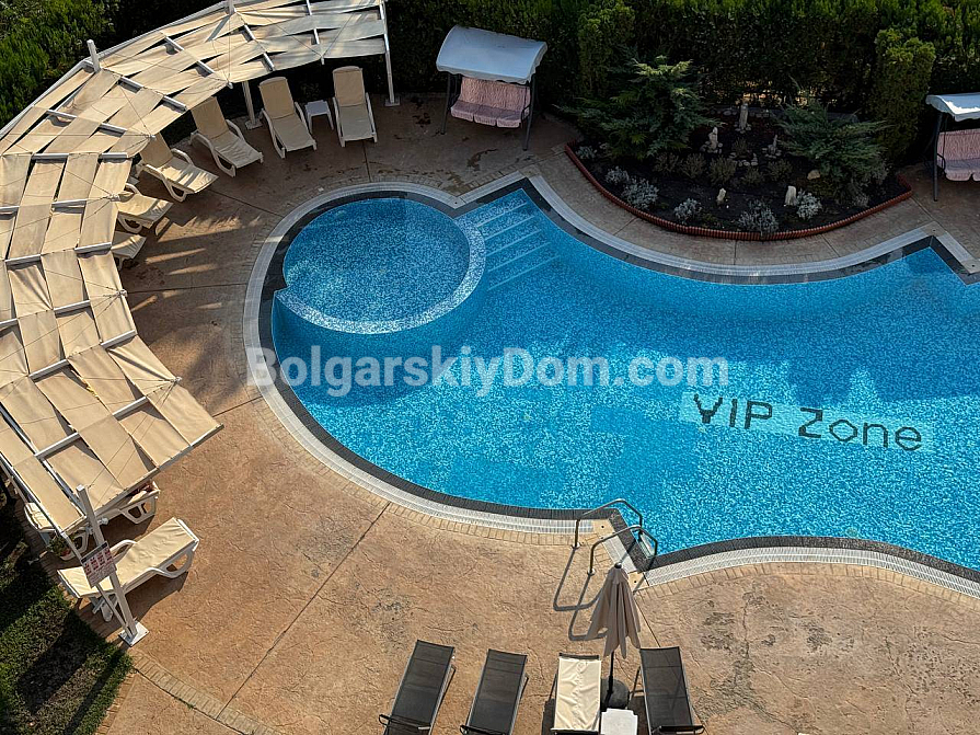The Vip Zone residential complex is located in the popular Cocoa Beach area, considered one of the best locations on the coast due to its wide beach line and golden sand. The sea is just 500 meters away, while the building itself is set in a quiet area protected from the noise of the central promenades. All city infrastructure is within walking distance: the central bus station, supermarkets, a market, and medical centers, making the location suitable for year-round living. The gated territory features a swimming pool and guarded parking, and the annual maintenance fee is 9.6 euros per square meter. You benefit from a prestigious neighborhood and close proximity to Nessebar, which can be reached with a pleasant 15-minute walk along the promenade. We look forward to your call to arrange a viewing!