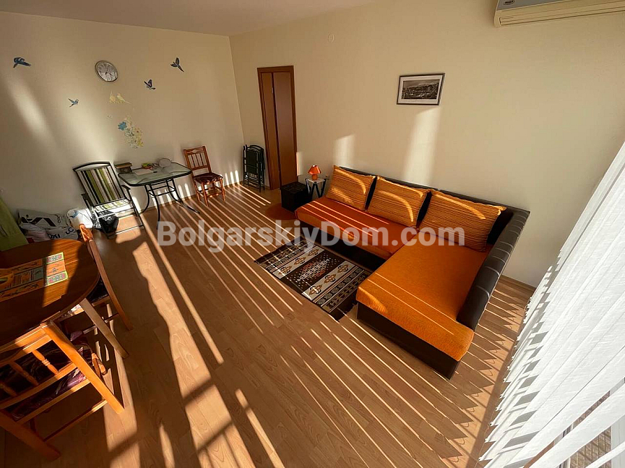 From Bolgarskiy Dom — a new property in the largest and most family-oriented project on the coast, Crown Fort! This one-bedroom apartment with a total area of 68 sq.m. is located on the second floor and immediately stands out thanks to its smart layout: the kitchen area is set in a separate niche. This practical solution clearly separates everyday activities from relaxation. The apartment is offered in true “move-in ready” condition with a full set of furniture and appliances, so you won’t need to spend time furnishing or searching for contractors. A separate entrance hall and a cozy bedroom turn this option into a real home for permanent living rather than just a holiday getaway.