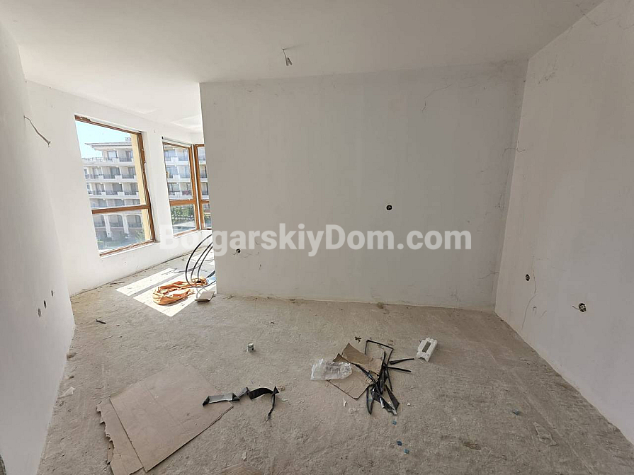 Bolgarskiy Dom presents an investor’s lot for those who want to create an interior based on their own design and avoid overpaying for someone else’s renovation. In the Diamant Palace complex, an apartment of 49 sq.m. on the fourth floor has come up for sale. The property is offered unfurnished, giving you complete freedom of choice: you decide on materials, color palette, and the level of appliances. Brick walls provide excellent thermal insulation, while the layout allows the space to be efficiently zoned into a sleeping area and a living room with a kitchen unit. Panoramic windows visually expand the space and fill the rooms with light, creating a solid base for modern and highly liquid housing.