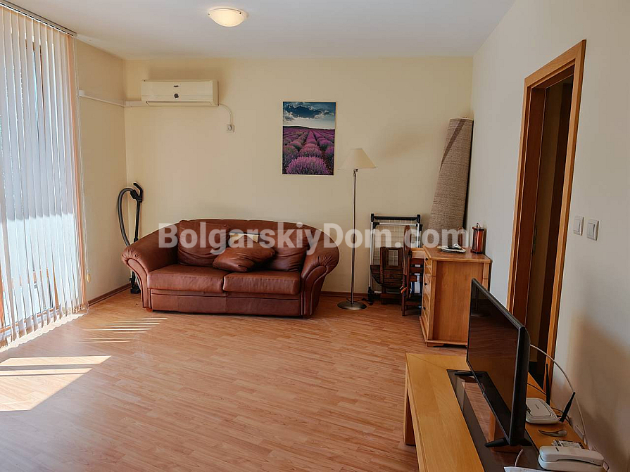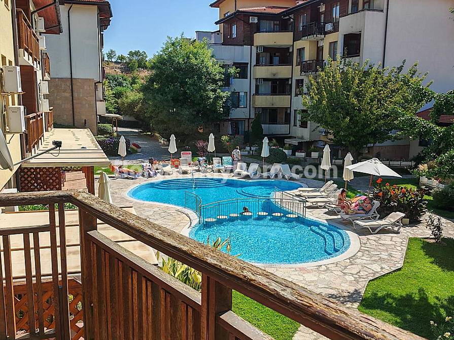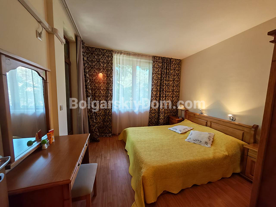 Our agency offers for sale a spacious apartment in one of the most iconic first-line complexes in Saint Vlas. This is Garden of Eden – a premium-level project where the elevator takes you (literally!) straight down to a private white-sand beach. The two-bedroom apartment with a total area of 89 sq.m is located on the second floor and overlooks the swimming pool. Such a layout and size significantly exceed standard resort properties, providing freedom of movement and true everyday comfort. The apartment is fully furnished, equipped with all necessary appliances, and has Act 16, allowing the transaction to be completed in the shortest possible time.