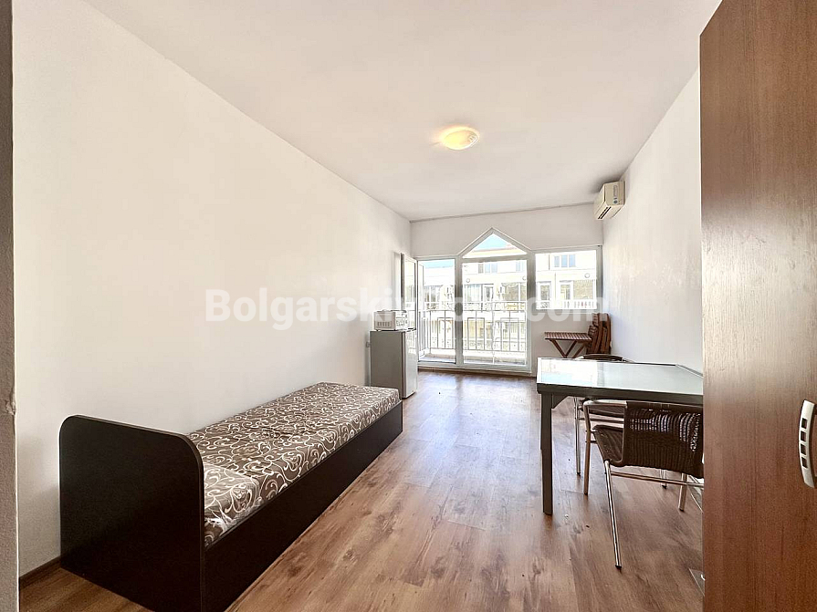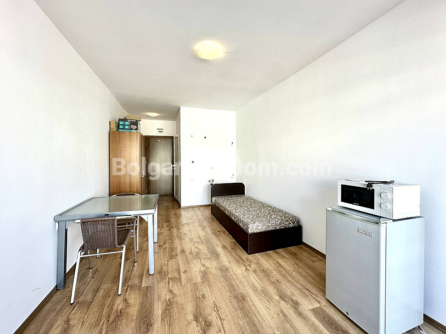 The complex territory is gated and guarded 24/7. It offers everything for comfortable living and holidays: a swimming pool, a children’s playground, and a barbecue area. The building has Act 16 and is equipped with a modern elevator. Annual maintenance costs are only 290 euros. This amount makes the property an economical asset with a high level of service and well-maintained green areas. The location in the western part of Sunny Beach is quiet and free from traffic noise. Supermarkets, cafés, and an aqua park are nearby. We provide full legal support for the transaction. Would you like to receive a detailed video tour of this apartment right now? We look forward to your call!