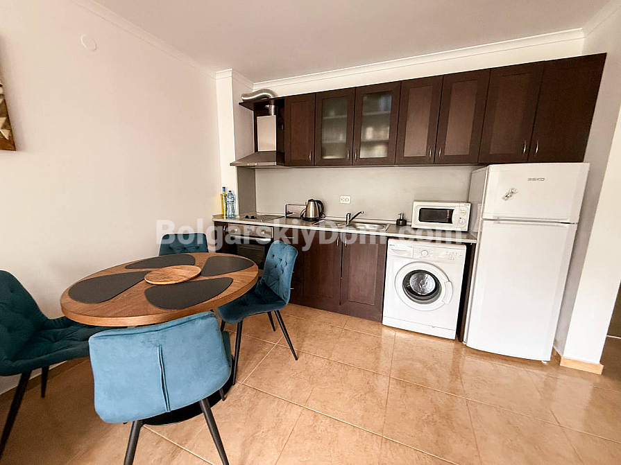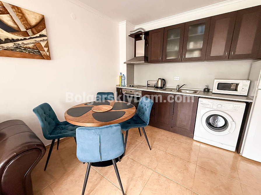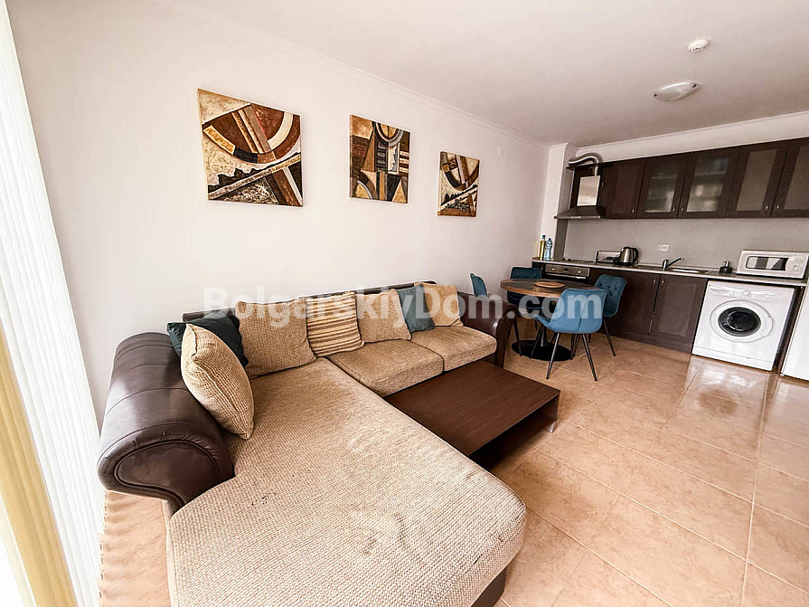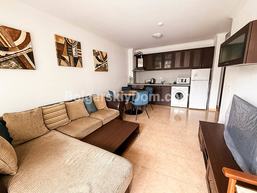 An excellent property is now for sale! In the most sought-after location of Sveti Vlas, in the Arena 1 complex, a great opportunity has become available. This cozy one-bedroom apartment on the third floor has a “net” area of 52.21 sq.m., meaning you pay for real living space, not for the air in common corridors. The windows overlook the inner courtyard with a pool, creating that relaxed resort atmosphere that draws people here. The apartment is just a few steps from the elite Dinevi Marina, which automatically increases its value and makes it a liquid asset that can generate rental income from day one.