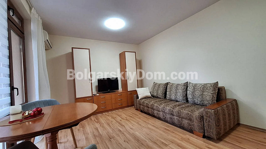 New on the market! On the coast of Sveti Vlas, a truly remarkable opportunity has appeared – a spacious one-bedroom apartment in the gated complex Siyana. The 70 sq.m. apartment is located on the second floor and features a well-planned layout: there is an entrance hall, a separate bedroom, and a large living room with a kitchen area. The balcony offers a sea view, and the sandy beach is just a few minutes’ walk away, only about 300 meters. The apartment is sold fully furnished and equipped, so you can move into your new home immediately after signing the contract or start earning from rentals without delay.