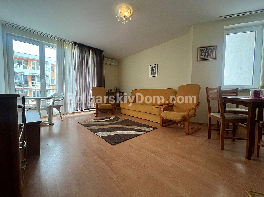 The location here is truly unique — the Robinson area between Saint Vlas and Elenite. You literally live between the sea (only 200 meters to the beach) and green hills, which creates a pleasant microclimate. The complex itself offers infrastructure close to exemplary: 17 swimming pools, water slides, tennis courts, restaurants, and shops. Controlled access is provided, which is an important advantage, along with free guarded parking for residents. The building has Act 16, electricity and water are on residential tariffs, so maintenance costs remain affordable. This is an excellent base for comfortable long-term living by the sea or for active rental income.