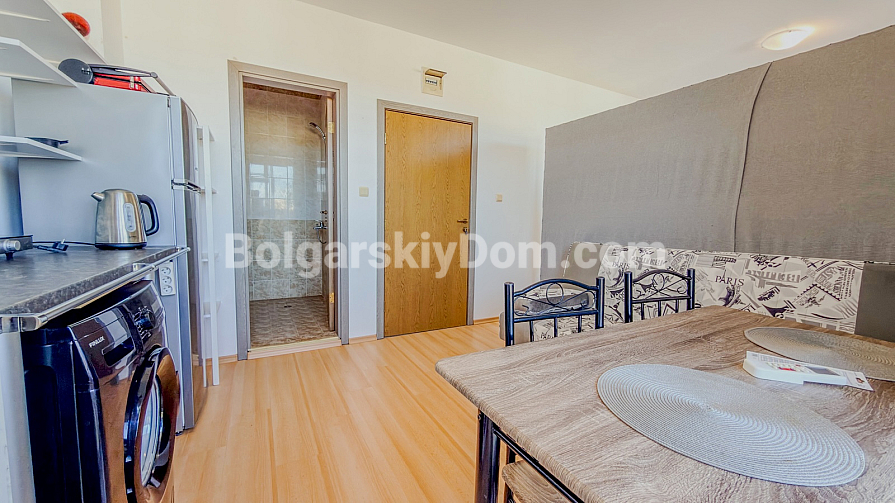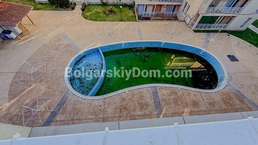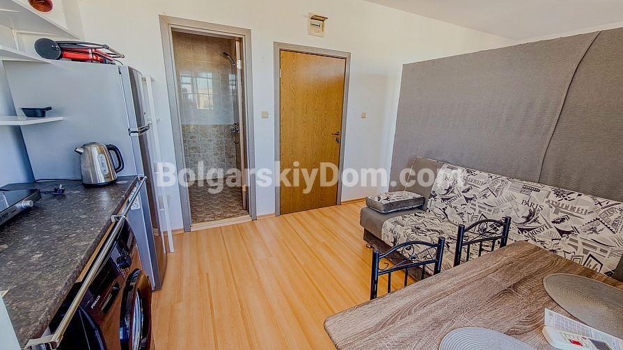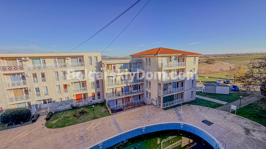 The complex offers well-developed infrastructure: outdoor swimming pools for adults and children, a restaurant, landscaped green areas, 24/7 security, and parking. Located just 3 km from the popular Sunny Beach resort with its sandy beaches, cafés, restaurants, and entertainment, the property combines a peaceful atmosphere with strong rental potential throughout the year.
