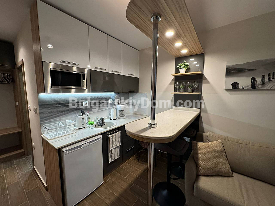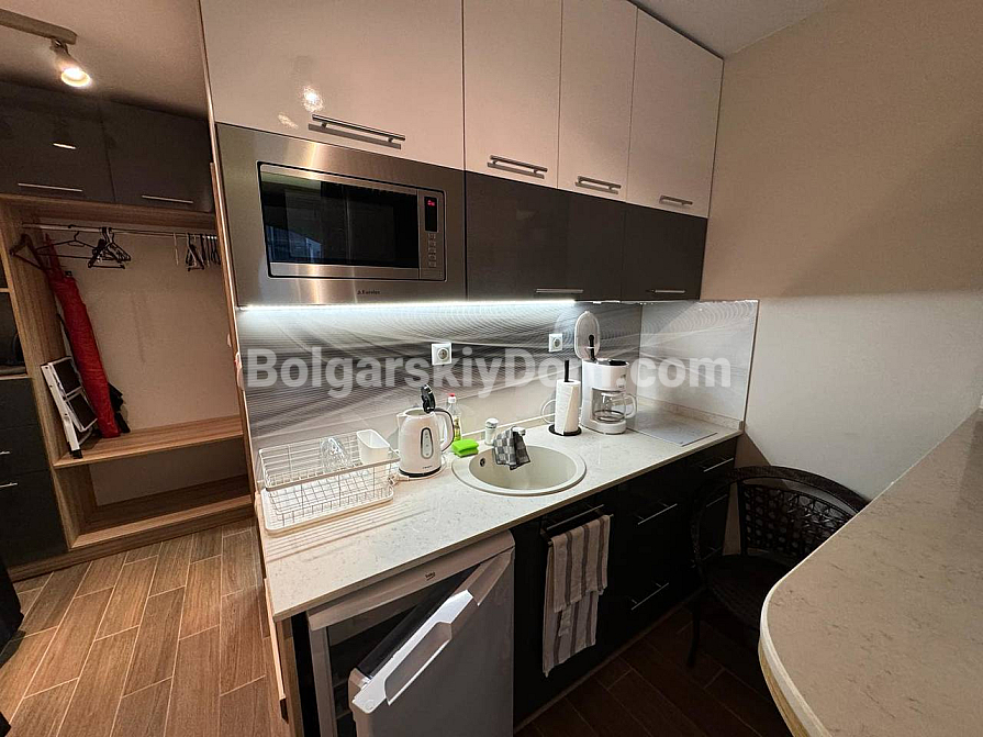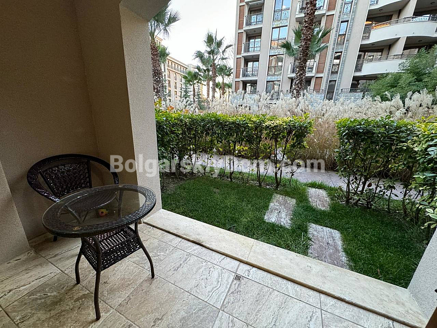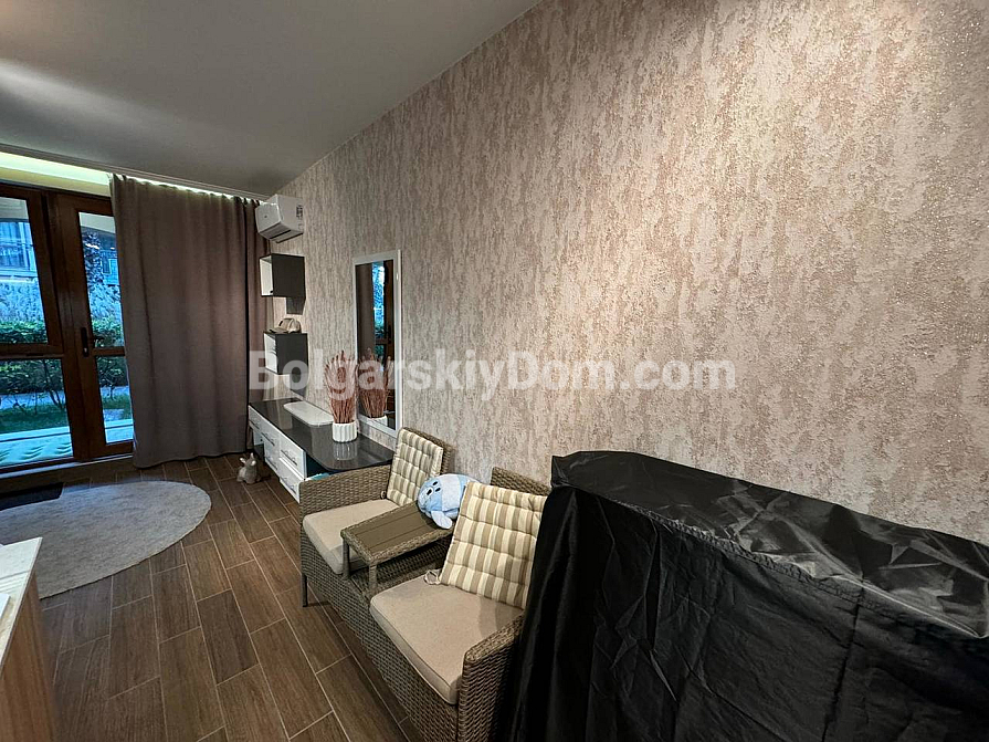 Bolgarskiy Dom presents! The Cascadas family of complexes once again delights with a quality offer: a studio apartment of 35 sq.m is now for sale in Phase 21. Located on the ground floor, this home feels like a cozy seaside bungalow, as you step directly from your apartment into a beautifully landscaped park with swimming pools. The brick building, constructed in 2012, is in excellent condition, and the interior is fully furnished and ready for living. A well-designed layout allows for a separate kitchen area and a comfortable relaxation space while maintaining maximum natural light.
