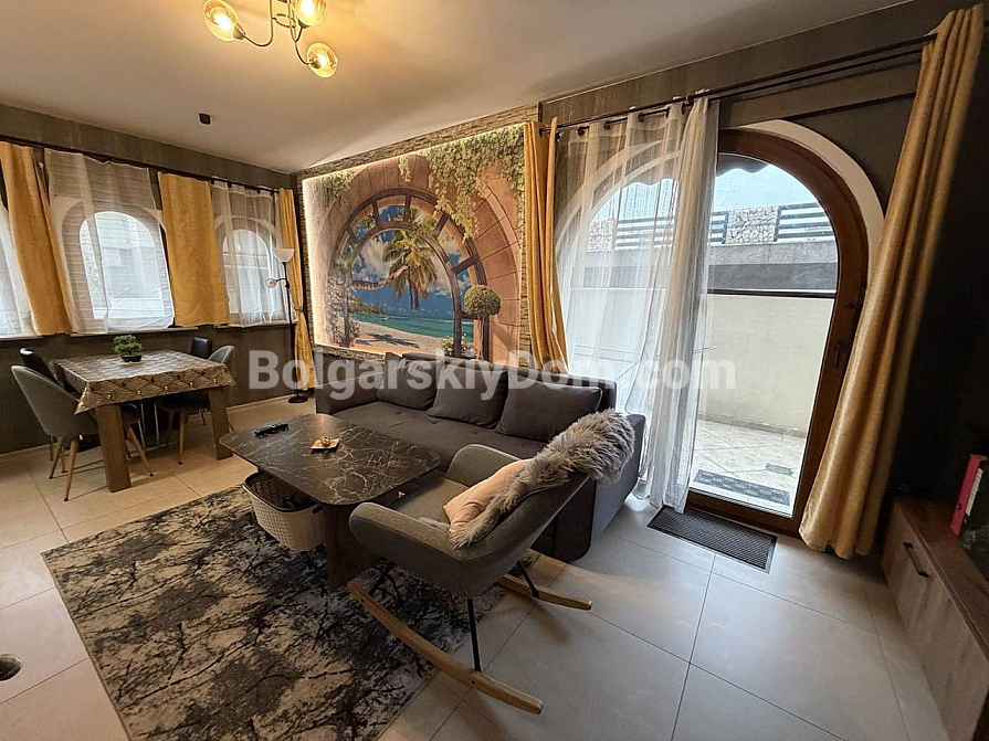 The green area of Kosharitsa is now in our company’s catalogue! A new listing in Grand Village – a modern one-bedroom apartment in a building constructed in 2025 at the foot of the Balkan Mountains. The spacious property of 56 sq. m is located on the ground floor of the Grand Village residential apartment hotel. This position provides direct access to recreation areas and maximum convenience without using elevators. The interior is designed in light tones, with brand-new furniture and appliances installed. The property is stylish and fully ready for move-in or rental, with no need to spend time on renovation or furnishing.