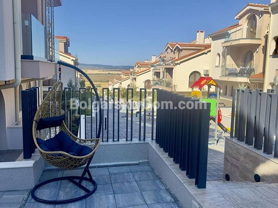 The gated complex is located in Kosharitsa, just 1.5 km from the beaches of Sunny Beach. Clean mountain air combines with peaceful surroundings here – a level of tranquility often lacking on the first or even second line. Owners have access to a swimming pool, well-maintained green areas, parking, and a security system. The low maintenance fee of 8 euros per square meter significantly reduces annual upkeep costs. The distance to the sea is approximately 4 km.