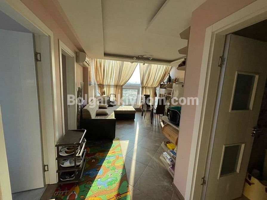 New in our resale property catalogue! Apartment in the Omega complex, Ravda – a compact and well-designed space of 65 sq.m located on the fifth floor (top level). Two bedrooms, a well-equipped bathroom, and a living area with access to a balcony offering sea views. The apartment was built in 2017, is well maintained, and its excellent south-facing orientation ensures maximum natural light. Elevator, security at the entrance. A storage room provides convenient space for keeping necessary belongings. Controlled access system and modern infrastructure of the complex.