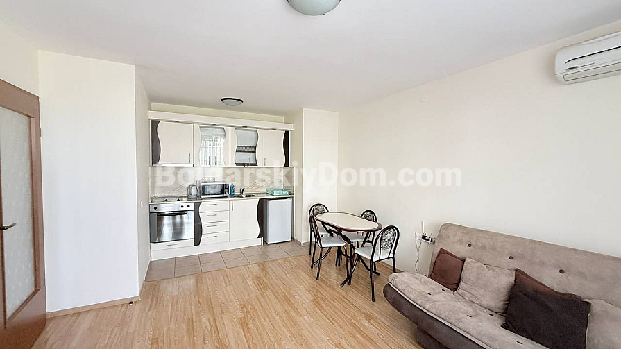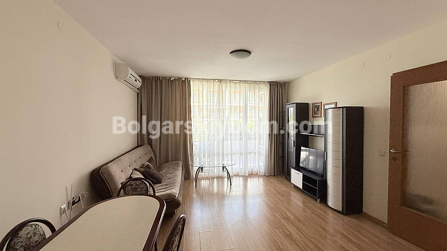 Compared to other apartment complexes, Crown Fort Noks is an entire town within the resort, offering first-class service. On the gated территории you will find clean swimming pools, cozy gazebos with barbecue areas, and shady alleys among pine trees. The complex is guarded year-round, offers free parking, and has an elevator. Its location between the mountains and the sea makes it highly demanded among tenants, guaranteeing stable rental income. Maintenance fee is 14 euros. The sea is literally 300 meters away – about a 10-minute walk. Bolgarskiy Dom will take care of the full property check and guide you step by step through every stage of the transaction.