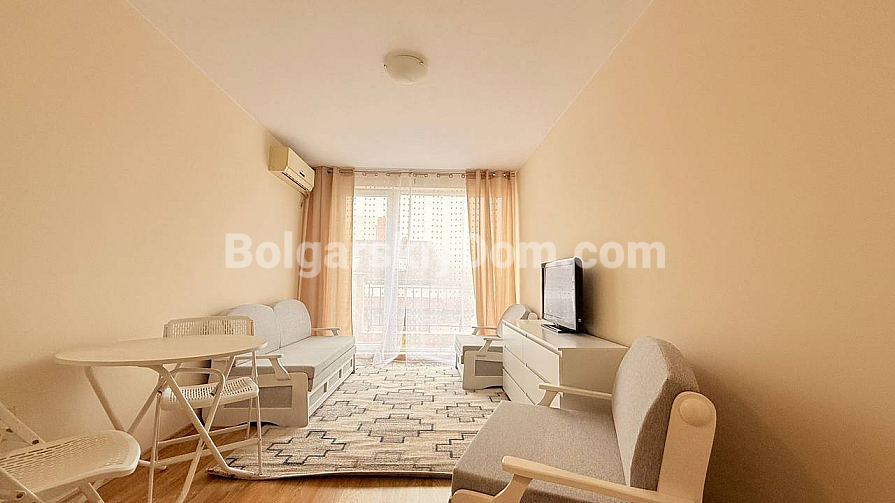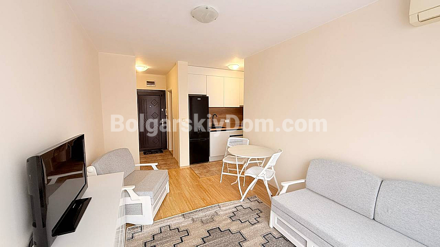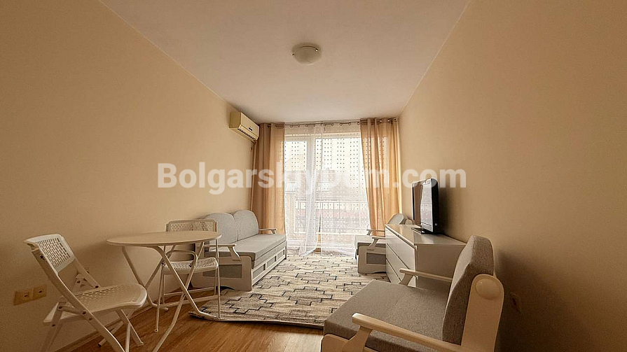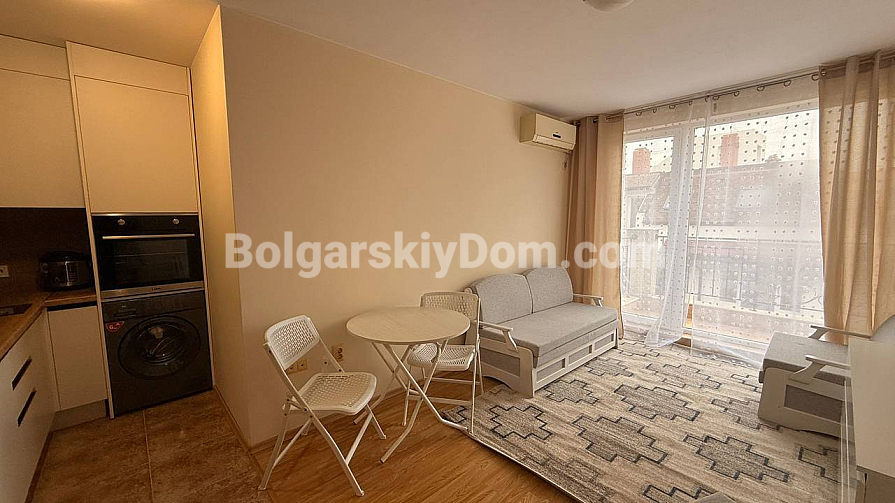 Compact studio in the center of Nessebar, Melia 6 complex – a ready-made solution for any of your purposes from Bolgarskiy Dom! Total area 38 sq.m., fourth floor out of five – an optimal height without tiring climbs and without the noise of the top floor. The studio is fully furnished with new furniture, modern appliances are installed, the interior is clean and neat. The layout includes a living area with a kitchenette, a fully equipped bathroom, and an entrance hall. The windows face the city. The apartment has its own electricity and water meters – full independence in utility management. 24/7 security on the territory and an elevator in the building. Maintenance fee – 150 euros per year, which is a low rate for such a complex.