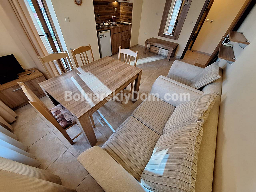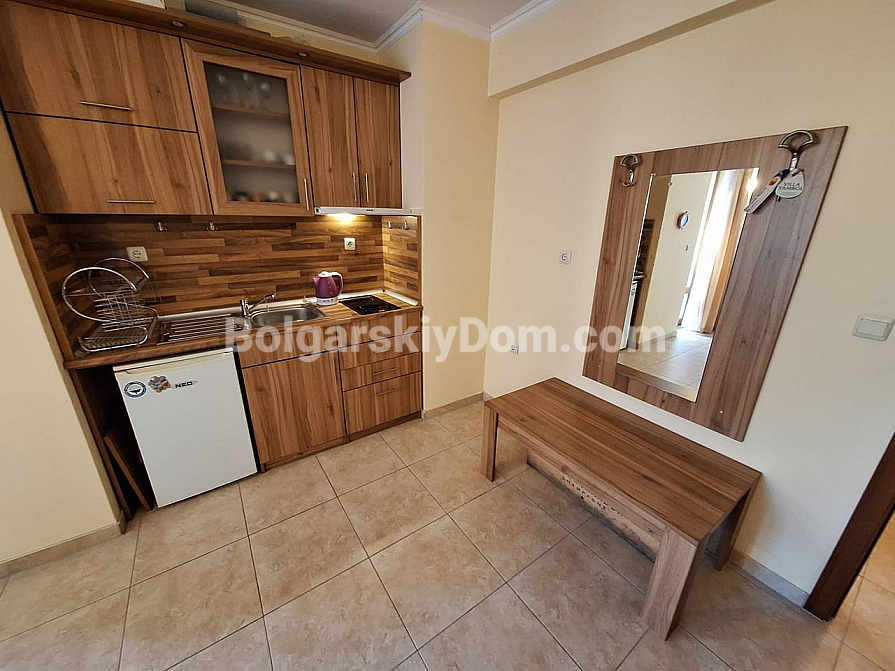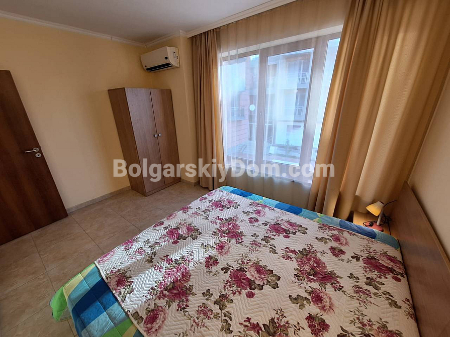 A cozy apartment just 300 meters from the famous Cacao Beach — turnkey and located in one of the most peaceful areas of Sunny Beach! Take a look at this excellent property offered by Bolgarskiy Dom in the Sea Regal complex. The apartment has an area of 53 sq.m, is situated on the third floor, and combines a well-thought-out layout, modern renovation, and full readiness for immediate move-in. The balcony overlooks the well-maintained green territory of the complex — the perfect spot for morning coffee in peace and quiet, away from the noise of large resorts. Layout: separate bedroom and a bright living room with kitchen area. The apartment is fully furnished and equipped — just come and live.