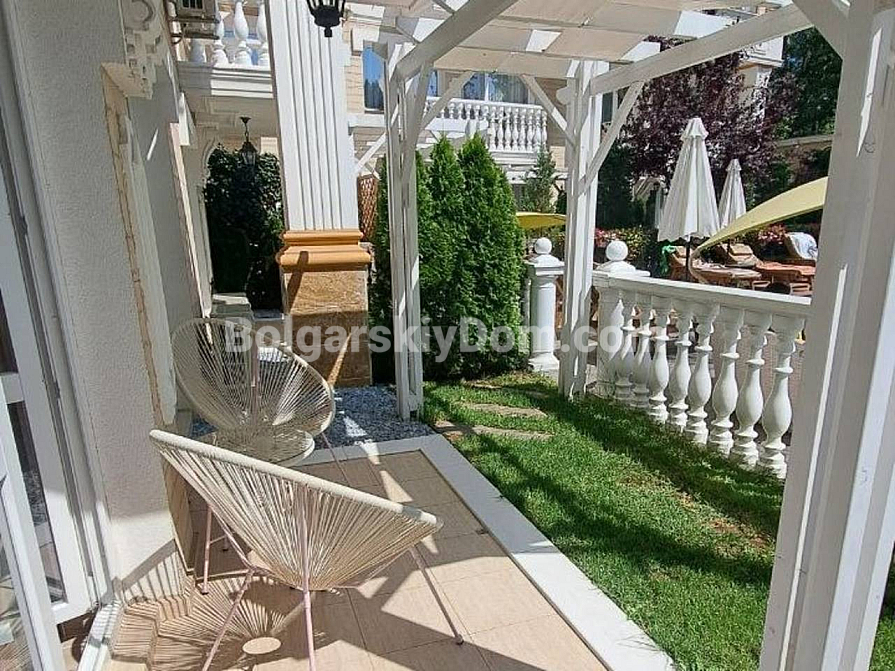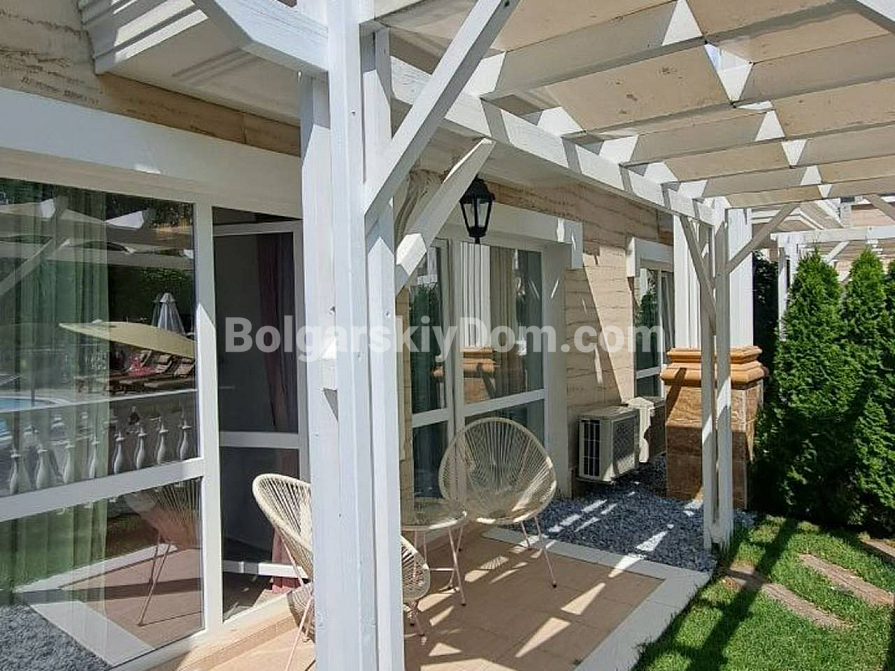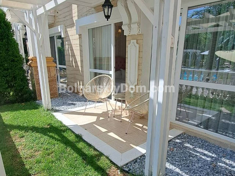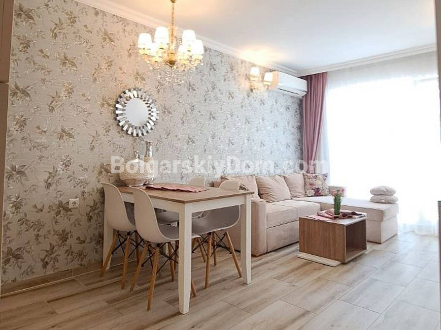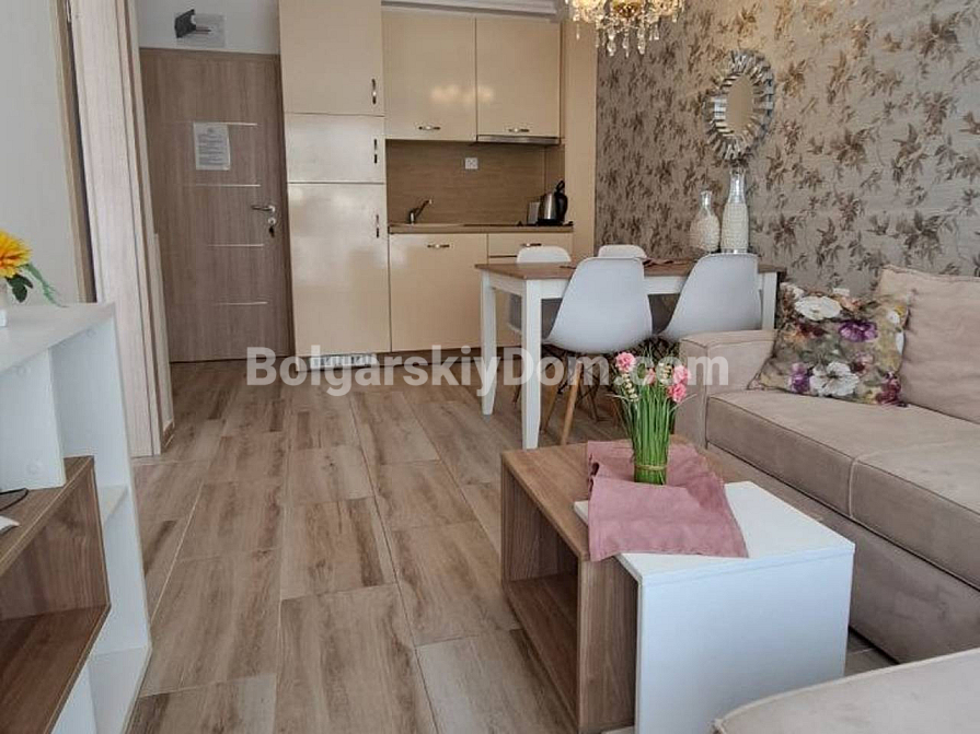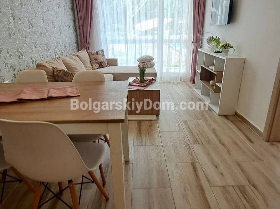 Viewings are already underway! A one-bedroom apartment is now available for sale in the luxury complex Sweet Home 6, Sunny Beach — a compact 43 sq.m space on the ground floor, ready for immediate move-in. The bedroom is separate, and there is a bright living room with a kitchen area. The windows overlook the shimmering pool and the beautifully landscaped grounds of the complex. The apartment is fully furnished with new furniture, all modern appliances are installed, and the bathroom is completely equipped. The ground floor is especially convenient — no waiting for the elevator and direct access outside. Act 16 has been received, confirming the full readiness of the property.