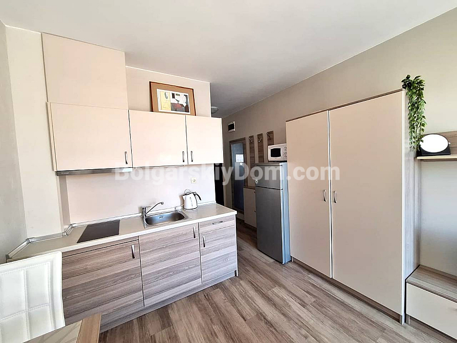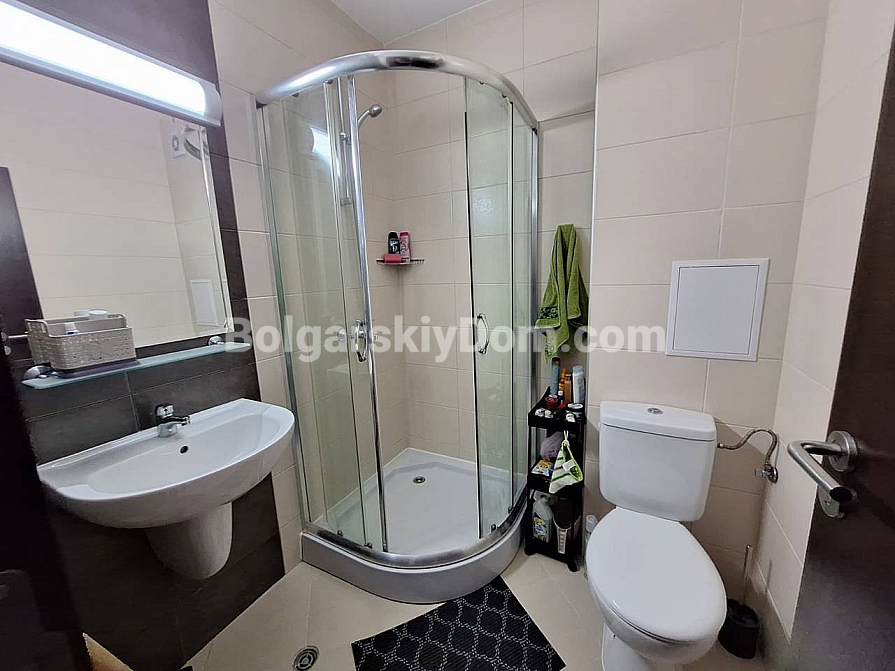Sorrento Sole Mar is a modern complex in the heart of the Yurta district of Saint Vlas, designed with elegant architecture and carefully planned infrastructure. The complex features a two-level swimming pool, landscaped gardens, children’s playground, secured parking, and 24-hour video surveillance. Completed in 2024, it has Act 16. The monthly maintenance fee is only 12 euros per sq.m — the lowest on the resort. The beach is 250 meters on foot, Dinevi Marina is a 30-minute walk, 3 km to historic Nessebar, and 40 km to Burgas Airport.