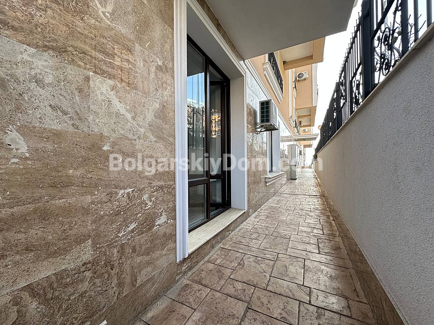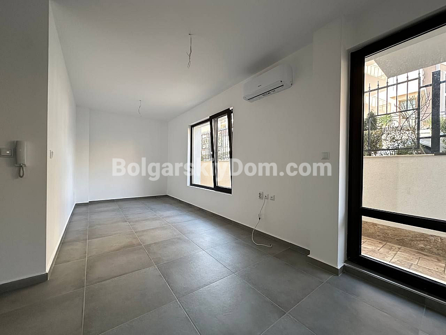 New listing in the catalog! The team of Bolgarskiy Dom real estate agency presents a studio in the Mary Beach complex – first line in the prestigious Yurt area of Saint Vlas. The apartment offers 40 sq.m on the ground floor with direct access to a private terrace. The sea is only 50 meters away, so the walk to the beach takes no more than two minutes. The apartment has basic finished walls and floors, the bathroom is fully equipped, and only the interior furnishing remains to be completed. This property has excellent rental potential – message us to reserve a viewing time.