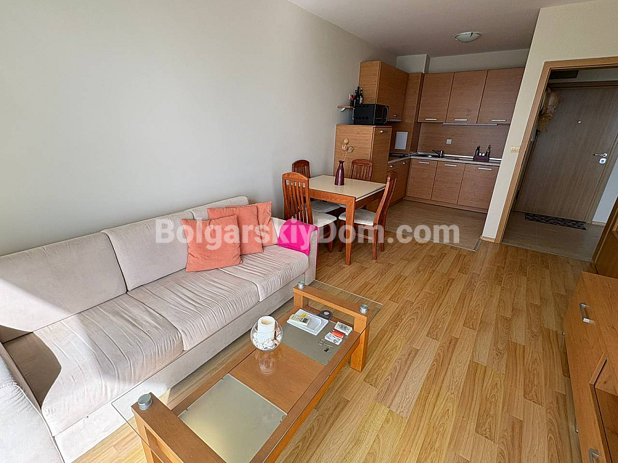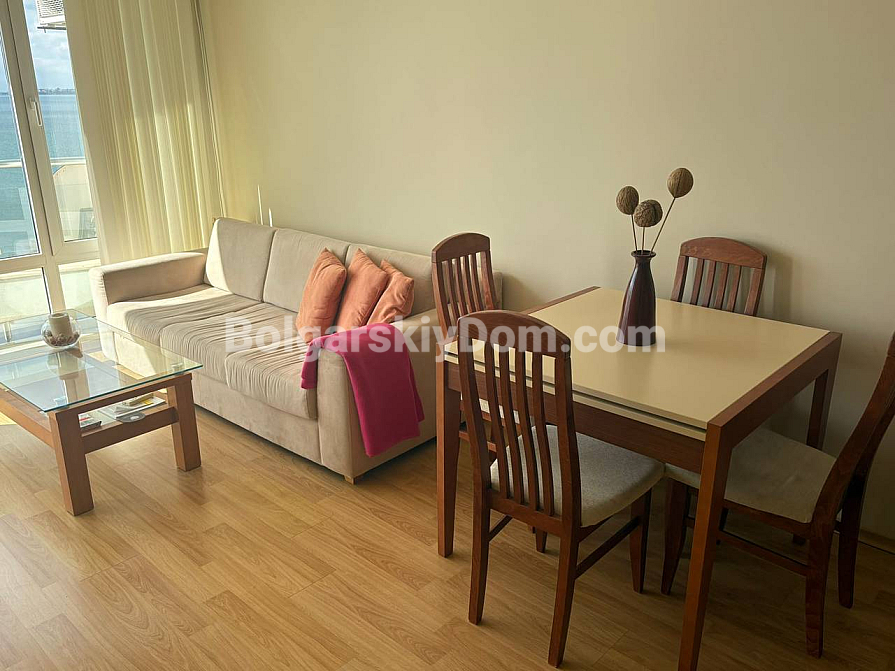 New listing in the catalog! The real estate agency Bolgarskiy Dom presents a one-bedroom apartment in Alex Beach – and this is truly a first-line property, not a marketing trick. The apartment offers 67 square meters on the second floor, positioned so that the panoramic sea view opens directly from the large windows, creating a feeling of complete connection with the coastline. The layout is functional: a spacious living room with a kitchen area flows into a separate bedroom, while the bathroom is equipped with everything necessary. The apartment is fully furnished with quality furniture, modern appliances are already installed and ready to use – you will not need to invest anything in additional work or cosmetic repairs. The second floor is the perfect balance: high enough to avoid street noise, yet low enough to avoid tiring climbs up the stairs or waiting for the elevator.