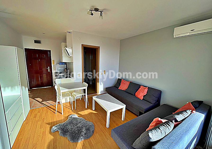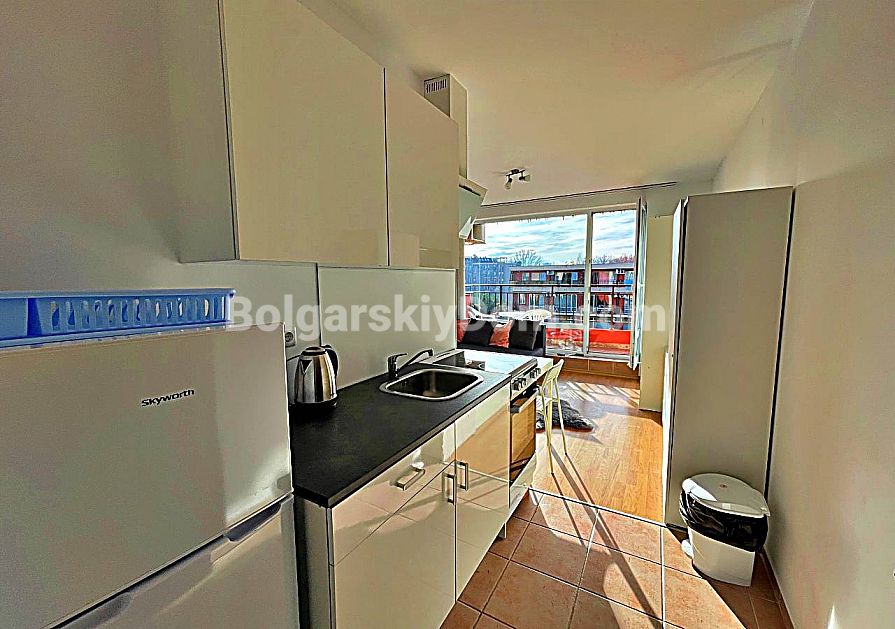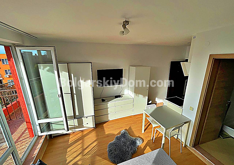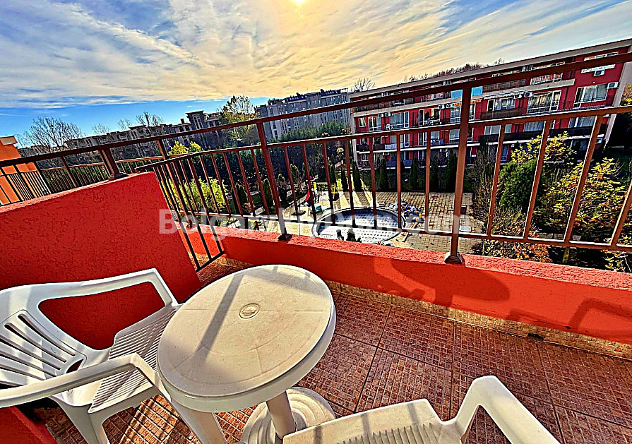 New listing in the catalog! The real estate agency Bolgarskiy Dom presents a 36 sq.m studio apartment in the family complex Orchid Fort Garden, Sunny Beach. Fourth floor with a view of the central swimming pool. The layout is typical for a studio: entrance hall, living area with a kitchen zone, bathroom with a shower cabin, and a terrace. The apartment is fully furnished and equipped with appliances and is ready for move-in on the day of purchase. The fourth floor is optimal for an investor, as you do not hear street traffic. The terrace can be arranged as a relaxation area.