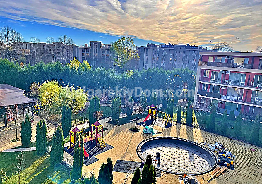 Orchid Fort Garden is a gated and secured complex with a full range of infrastructure: six swimming pools, a golf field, fitness center, children’s playgrounds, restaurant, shops, and a medical office. The complex is located in the western part of Sunny Beach, traditionally an area for permanent living rather than tourist hustle. The sea is 900 meters away, the water park is a few minutes’ walk, and the MM supermarket is nearby. The studio is ideal for short-term and mid-term rentals. Act 16. Maintenance fee: 13.5 euros per sq.m per year.