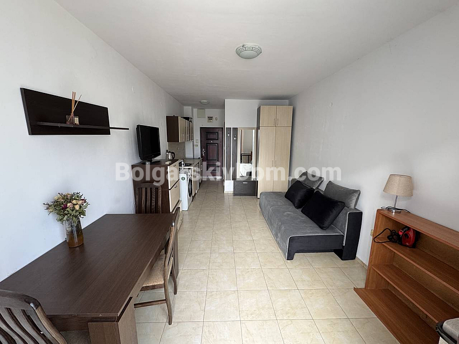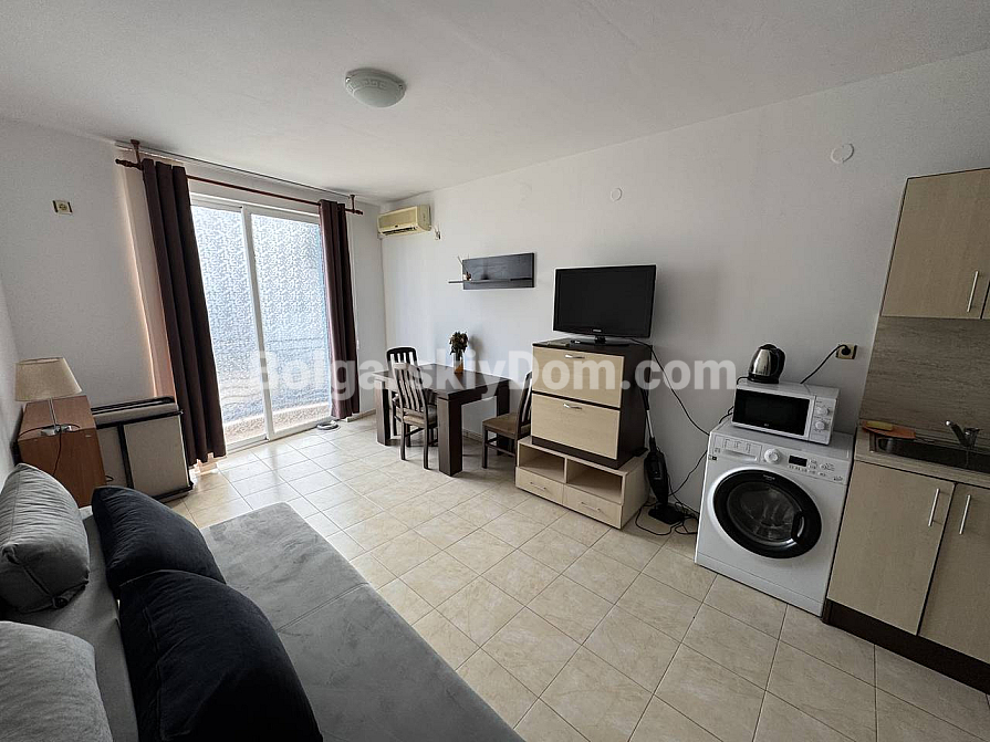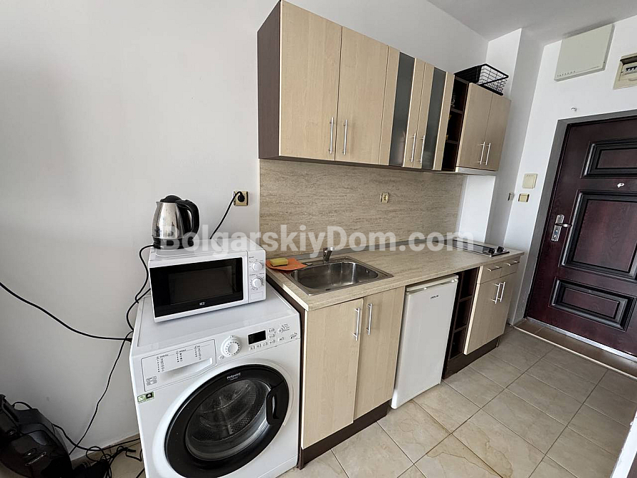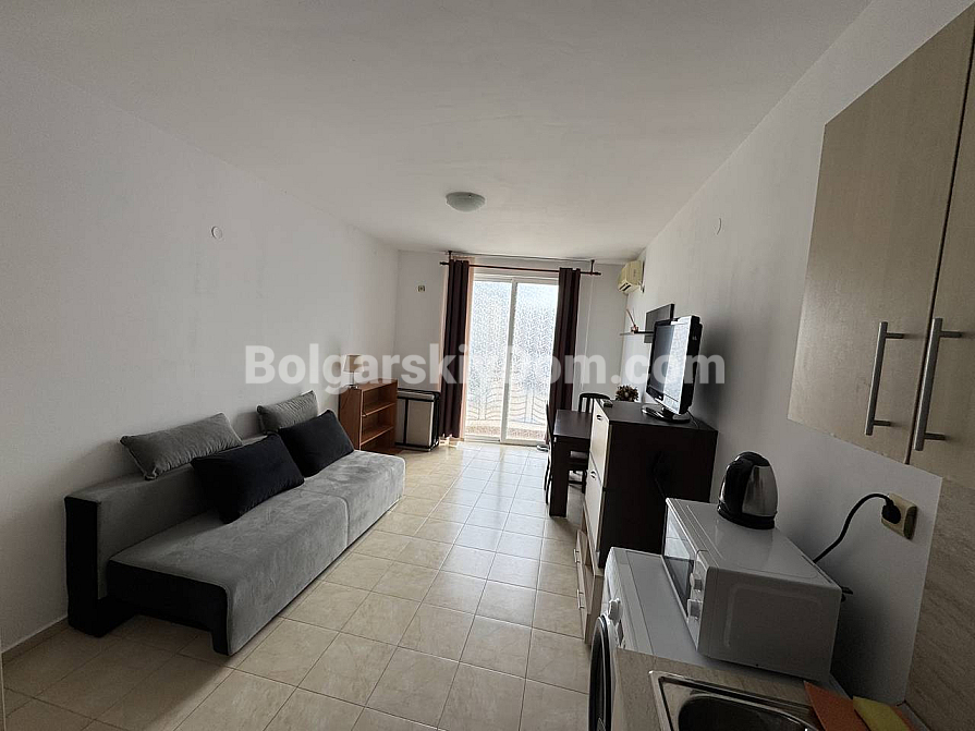 New listing in a highly liquid format in the catalog! The real estate agency Bolgarskiy Dom presents a 29 sq.m studio in the Sunny Day 3 complex, Sunny Beach. Second floor, balcony overlooking the central swimming pool. Living room with a kitchen area, one bathroom, all furniture and appliances included. The studio is sold ready for rental investment — tourists gladly choose this location, as the sea is only 900 meters away, while the area is quiet but convenient in terms of infrastructure.