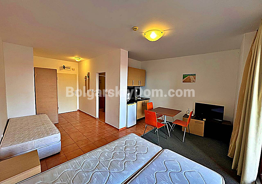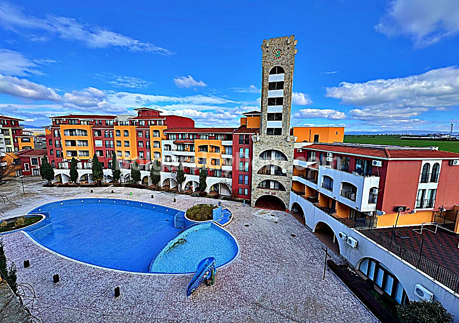 Marina Cape is a large gated SPA complex with its own yacht marina: several swimming pools (including children’s sections), restaurants, cafés, bars, a supermarket, shops, a fitness center, sauna, jacuzzi, massage rooms, medical center, beauty salon, children’s center, guarded parking, 24/7 security and video surveillance. All of this is just 50–100 meters from the sandy beach — only a step from the sea, while the area remains quiet and relaxed, away from the crowds of Sunny Beach (8 km away). The maintenance fee is fixed — 12 euros per sq.m. per year (includes pools, cleaning, security, and maintenance). Act 16 has long been obtained, so there are no risks. Bolgarskiy Dom will provide fresh photos and videos, organize an online viewing or an on-site visit, and help complete the transaction quickly — write to us in the chat or call!