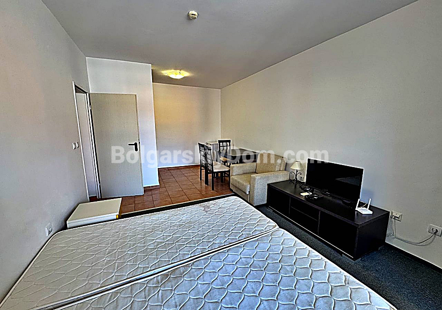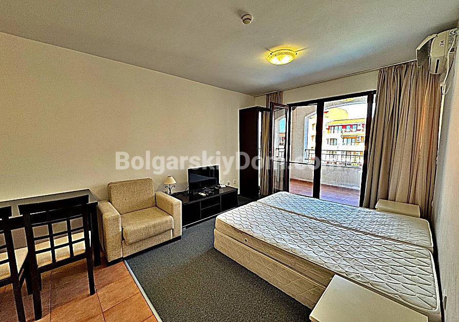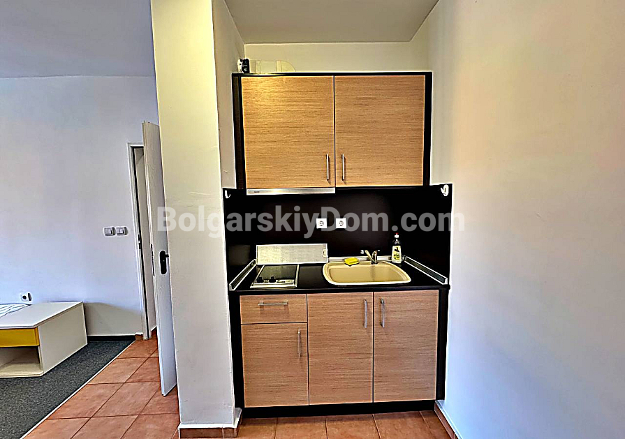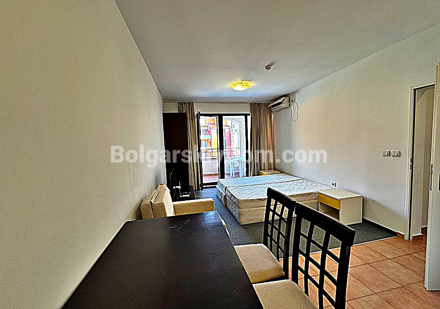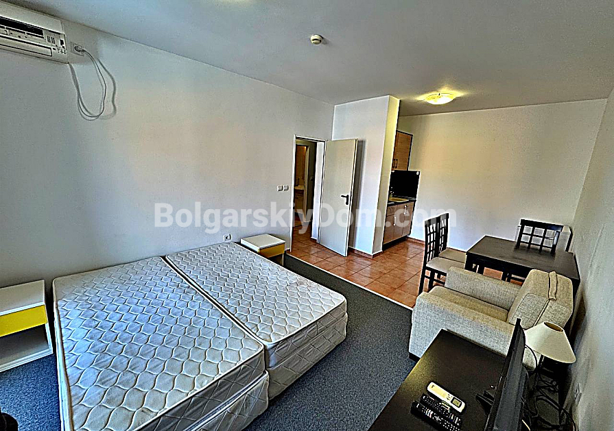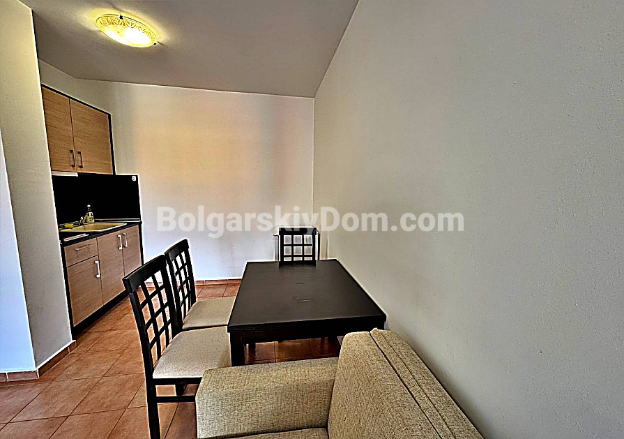 A cozy and profitable offer from Bolgarskiy Dom! A spacious studio on the first sea line in the Marina Cape complex in Aheloy. The property is located on the 3rd floor of a five-storey brick building from 2010 with an elevator. Total area 45 sq.m.: entrance hall, large room (kitchenette + living/sleeping area), bathroom with shower, and a terrace with sea view. The studio is furnished and equipped with appliances — bright and ready to use for holidays or daily rental during the season.