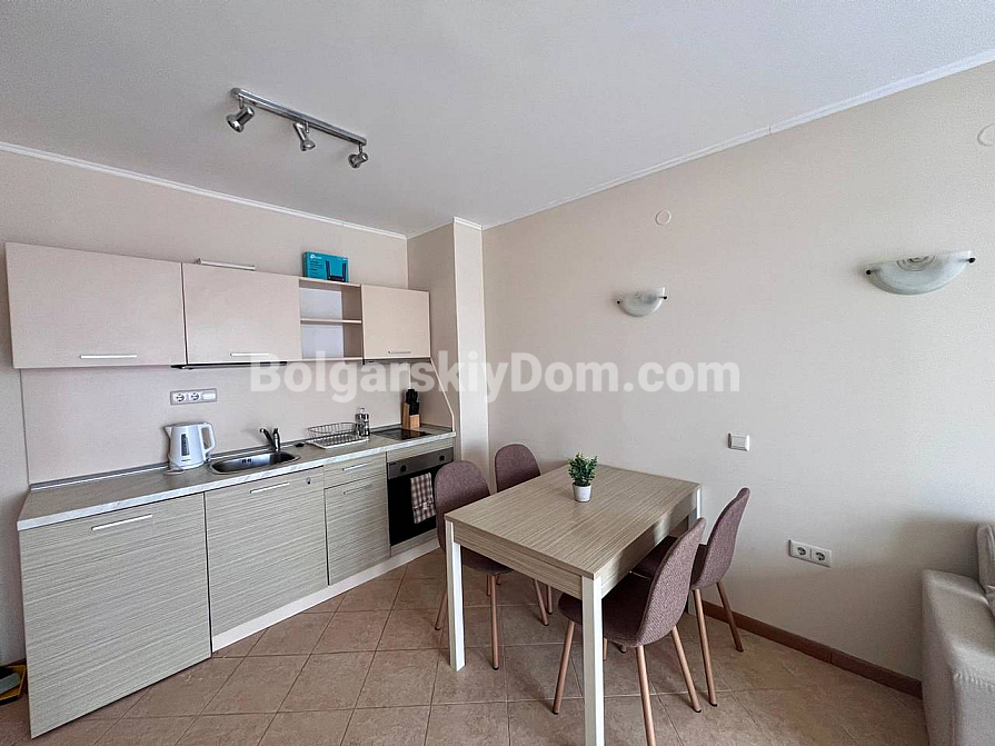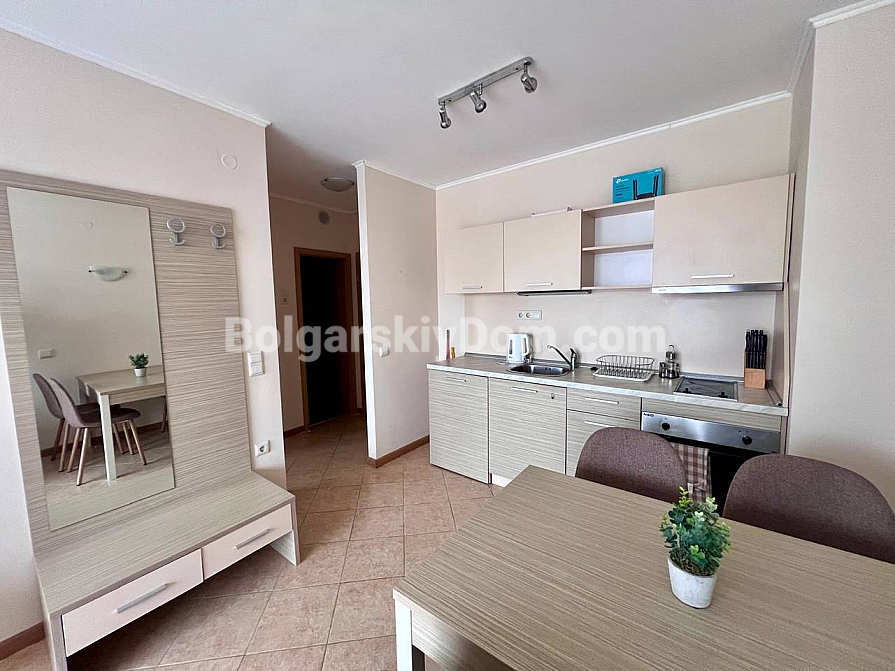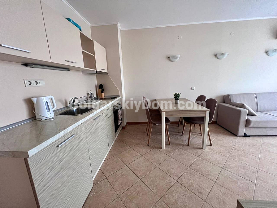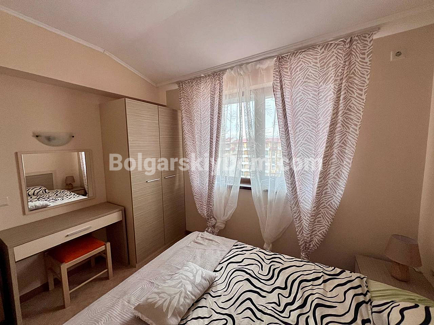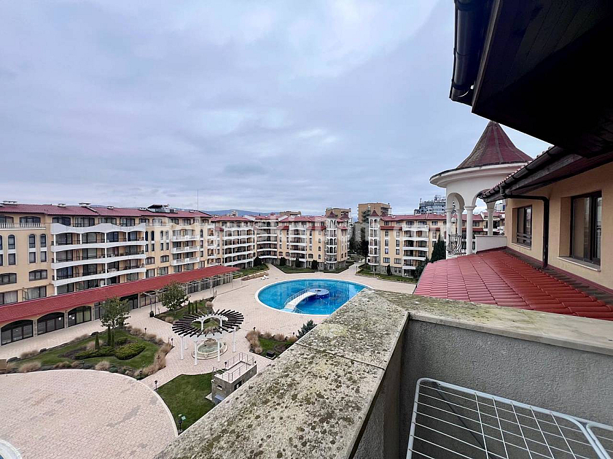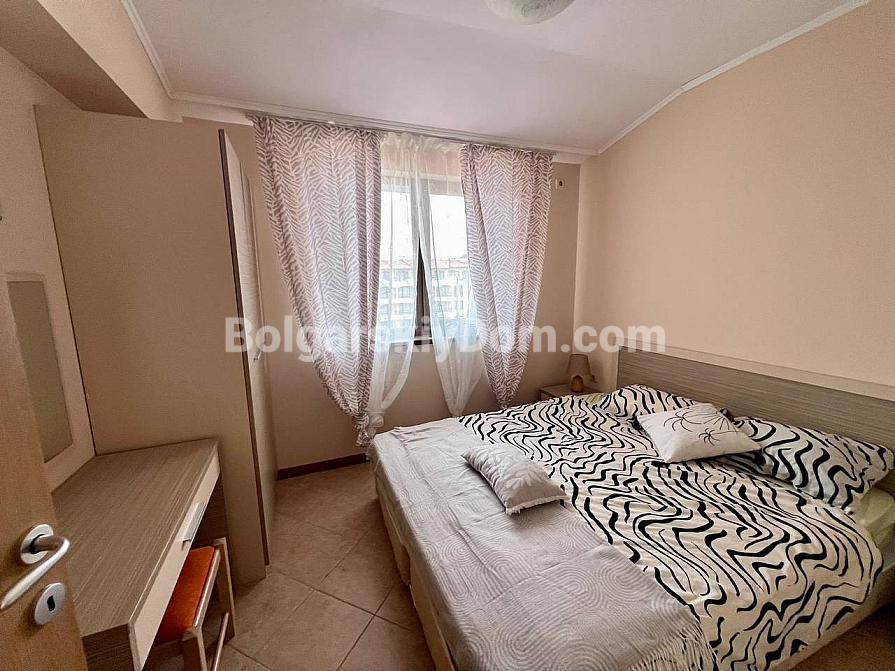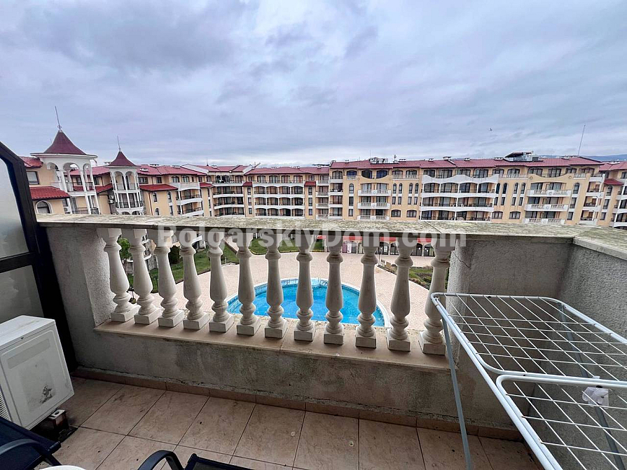 New addition to the Bolgarskiy Dom catalogue! A modern one-bedroom apartment in the Royal Sun complex in the center of Sunny Beach. The apartment has an area of 49 sq.m. and is located on the 6th floor of a six-storey building with an elevator. It features a classic layout: a spacious living room with a kitchen area, a separate bedroom, a bathroom, and a private terrace overlooking the complex pool. The apartment has been fully renovated, furnished with modern furniture, and equipped with all necessary appliances and air conditioning — ready for move-in in any season.