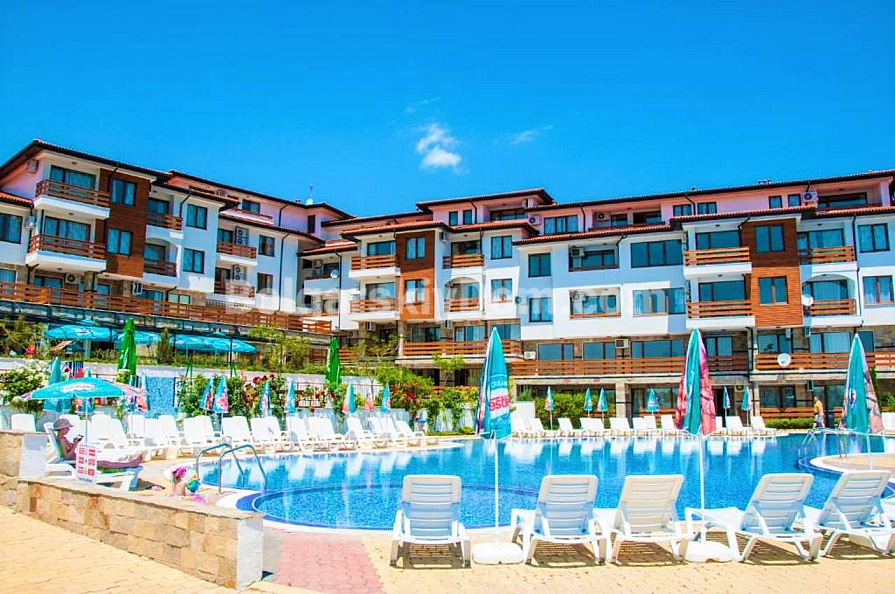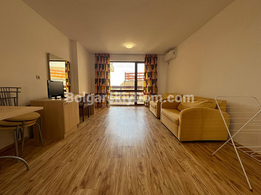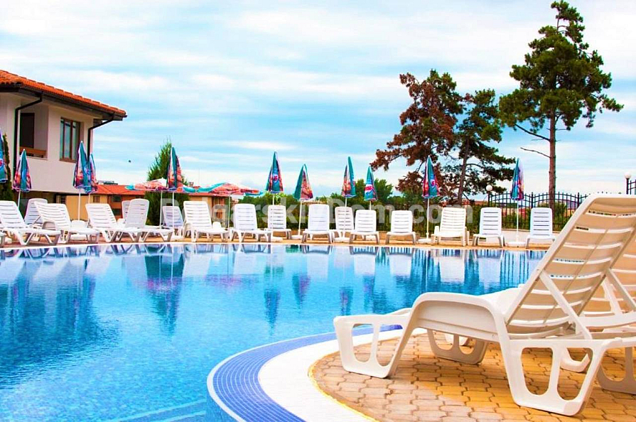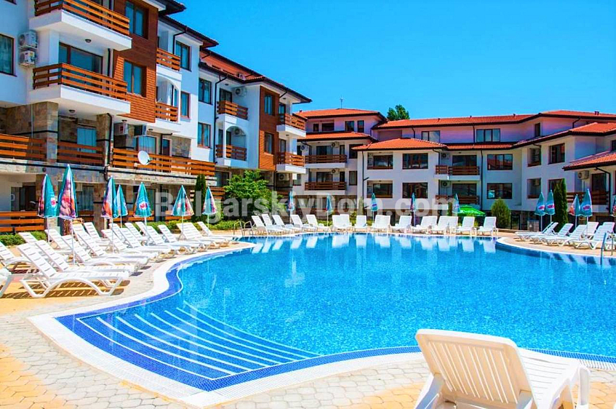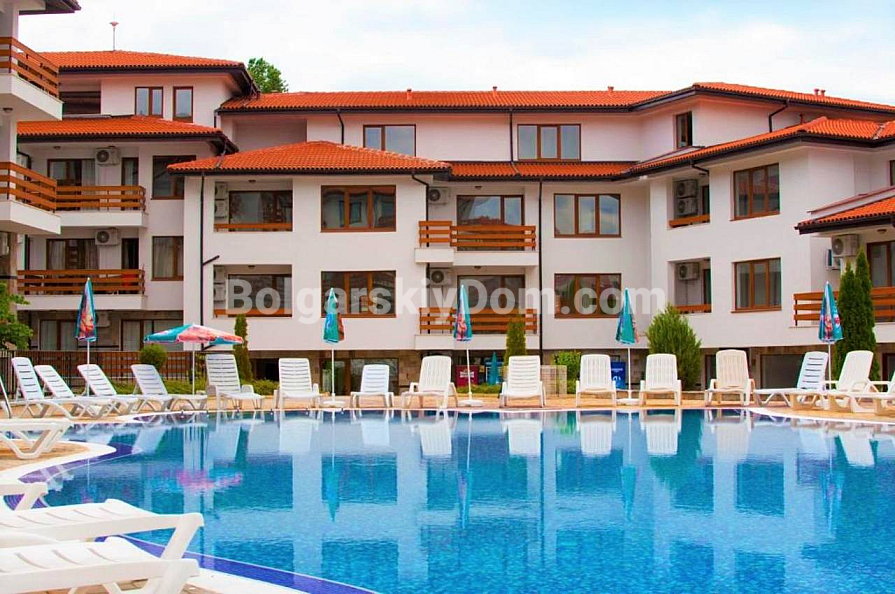 A budget-friendly yet very livable option for those who want to buy an affordable apartment by the sea without high maintenance costs! A one-bedroom apartment of 64 sq.m. in the small club-style complex Gardenia Hills, located in a quiet and green suburb of Sunny Beach — away from tourist crowds, yet close to everything you need. Ground floor with a private terrace opening directly onto the территории. The apartment is bright, in good living condition, and fully furnished with a basic set of furniture. The layout is classic and practical: a spacious living room with a kitchenette, a separate bedroom, a bathroom with a floor drain (walk-in shower), and an entrance hall.